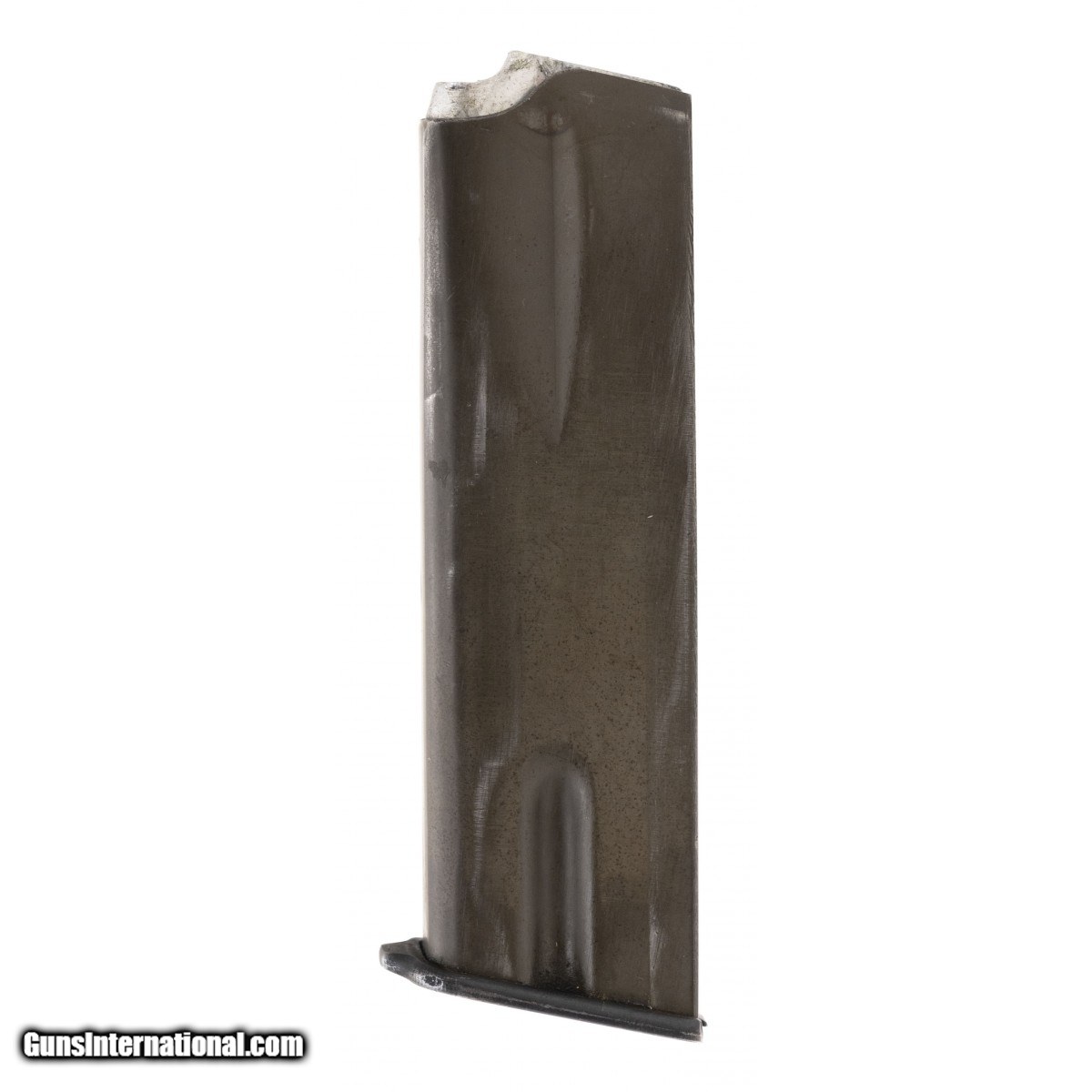 FN Hi Power 9mm magazine. Has aluminum follower and split tail bottom with in/out wear.