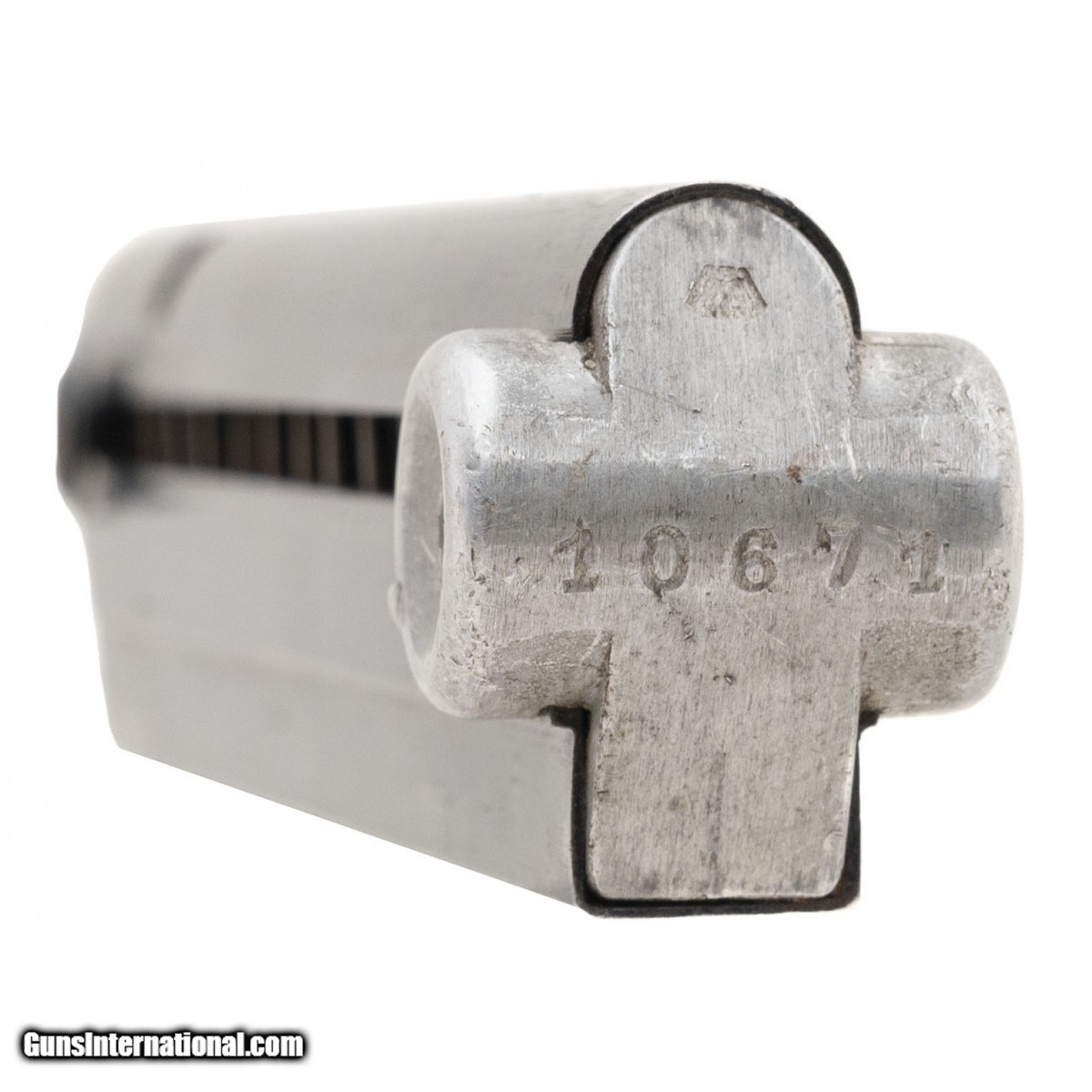 Description: " German Luger magazine in good condition. Marked 122 and E37 stamped twice. Bottom number:10671. SOLD |