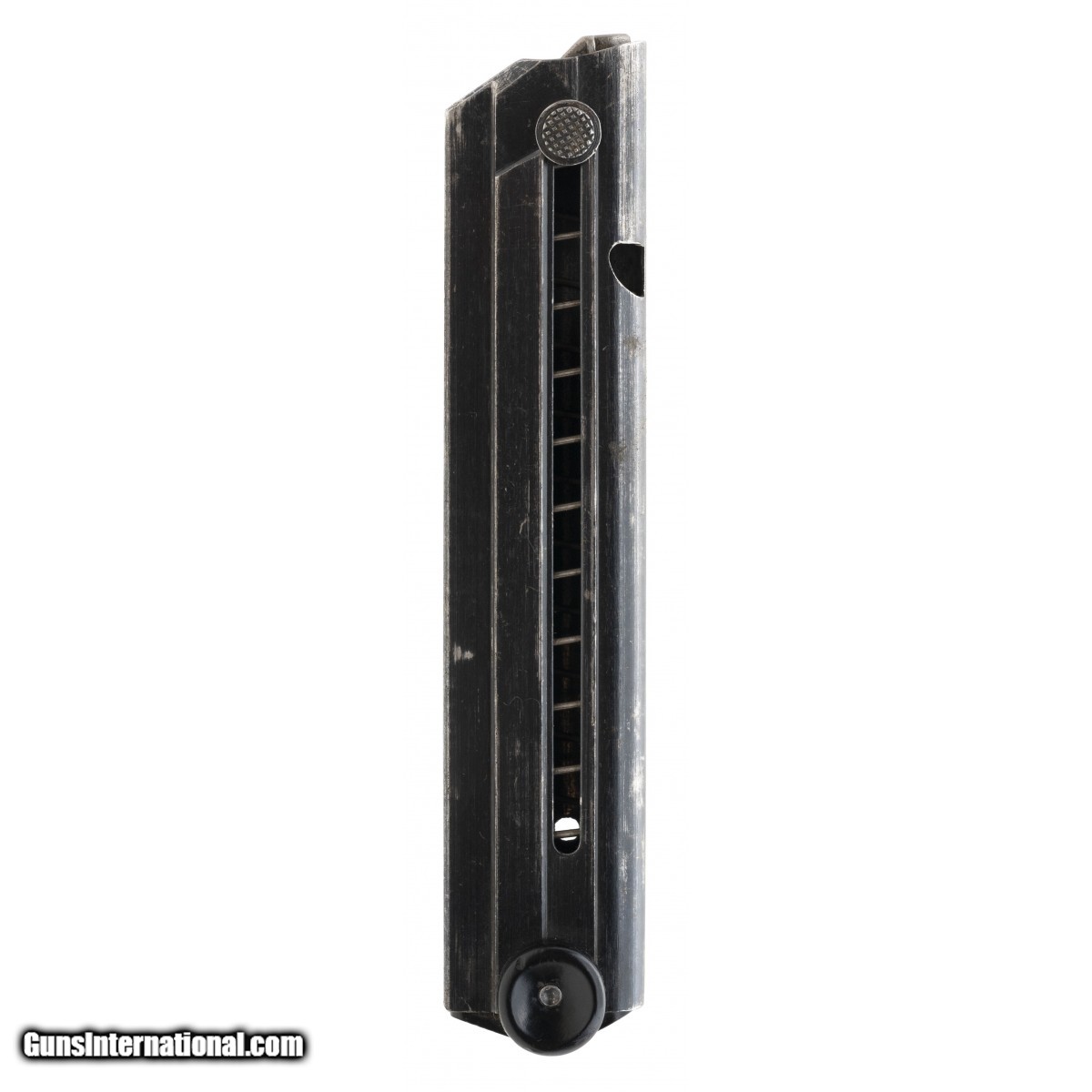 Description: " German Luger magazine with damaged bottom piece.Blued body marked E37 twice,fxo and P.08. SOLD |