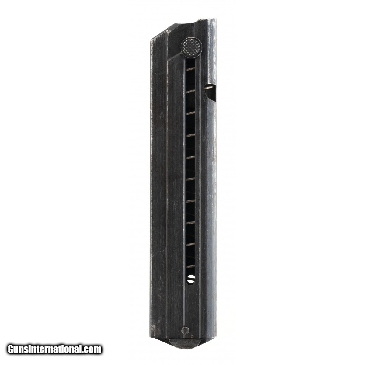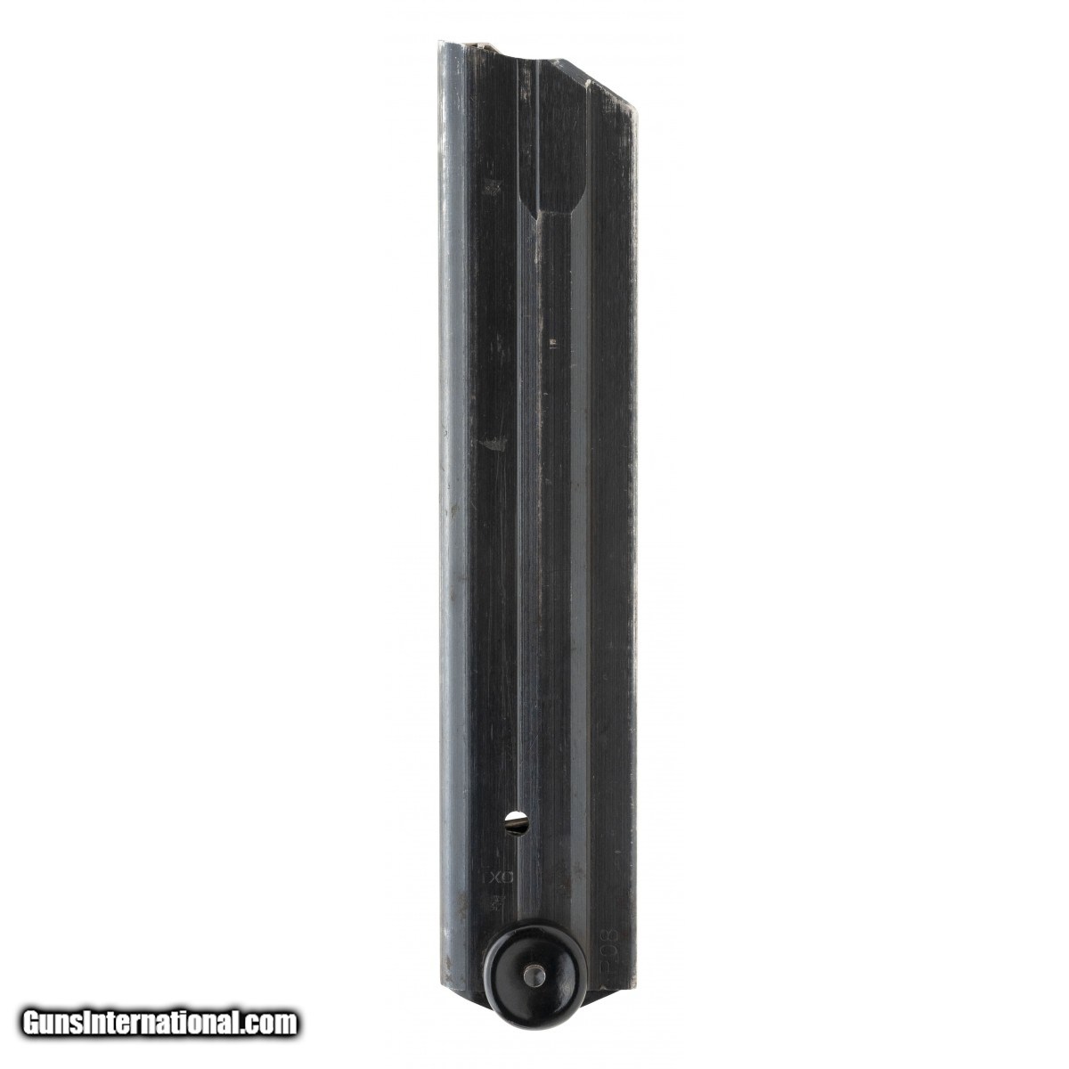 Description: " WWII Luger magazine marked fxo and E-37 twice.P08 is facing away from fxo.Black plastic bottom is broken,as usual. SOLD |