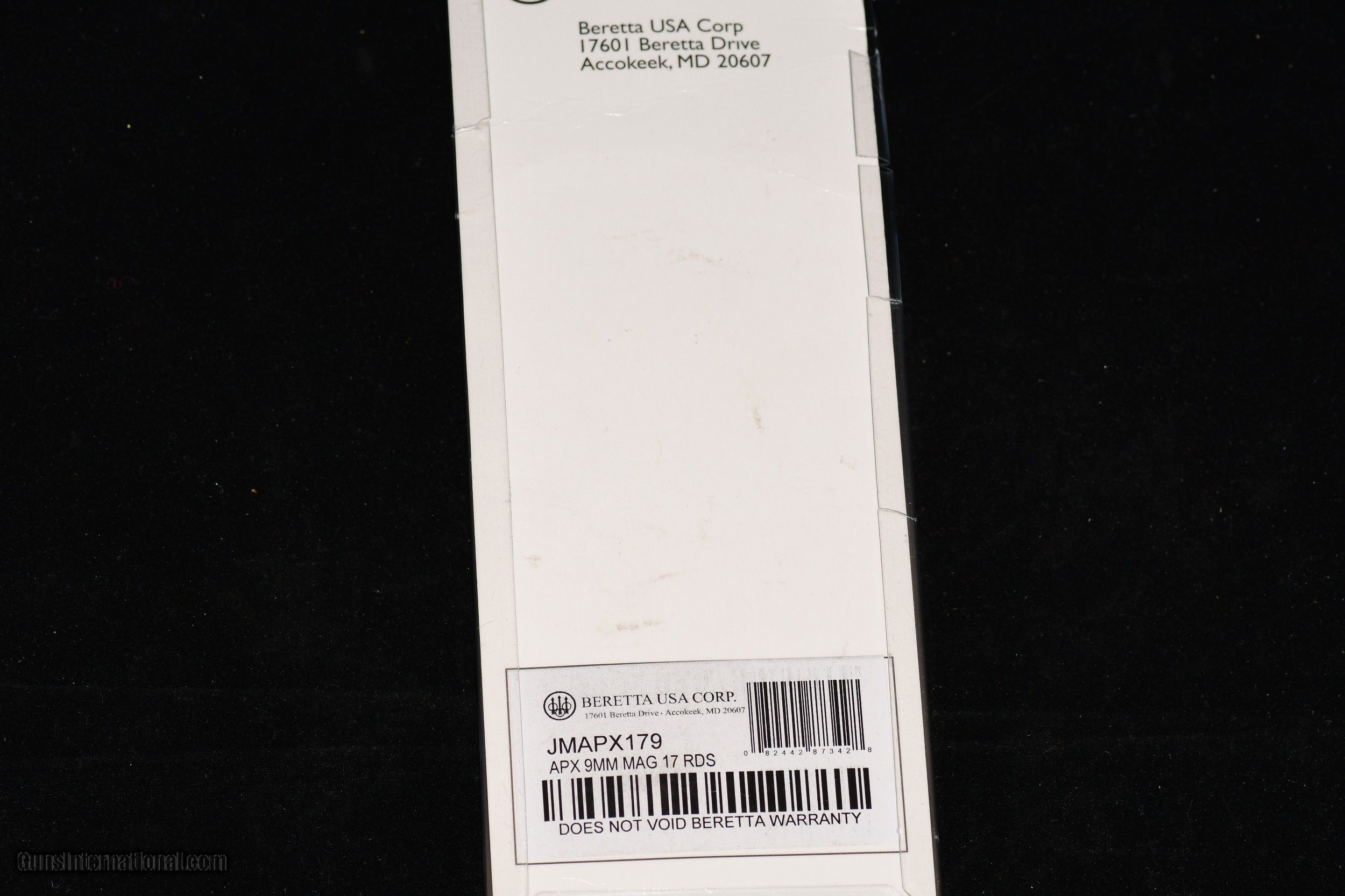 Description: Beretta APX 9mm Magazine 17 Rounds. New in Box. Buyer pays $3.50 USPS First Class Mail. SOLD |