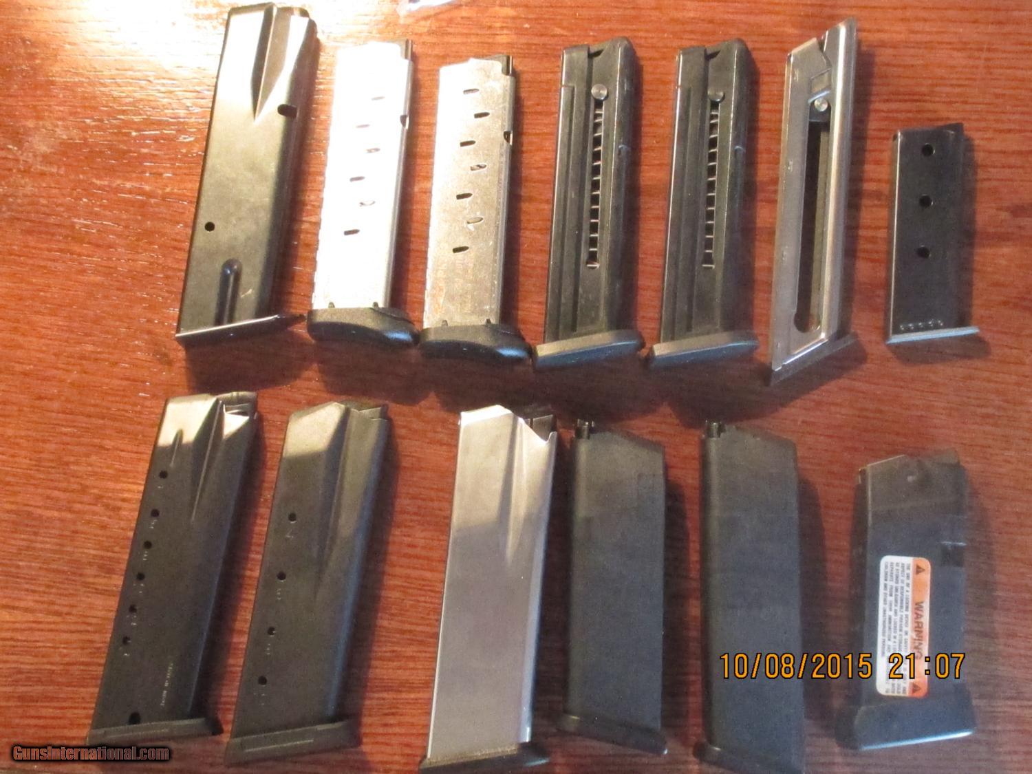Description: 13 Clips All Factory Original New Condition 1 BERETTA 22Lr 1 GLOCK 45 2 GLOCK 19 9MM 2 SIG MOSQUITO 22lr 1 SPRINGFIELD XDM 45 AUTO 1 RUGER SR 45 45 AUTO 1 RUGER SER 40C 40 S&W 2 WALTHER PK 380 1 TANGFOLIO TA90 9mm 1 DAVIS P380 380 AUTO SOLD AS LOT ONLY, FIRST $125 PRICE INCLUDES SHIPPING AND INSURANCE SOLD |