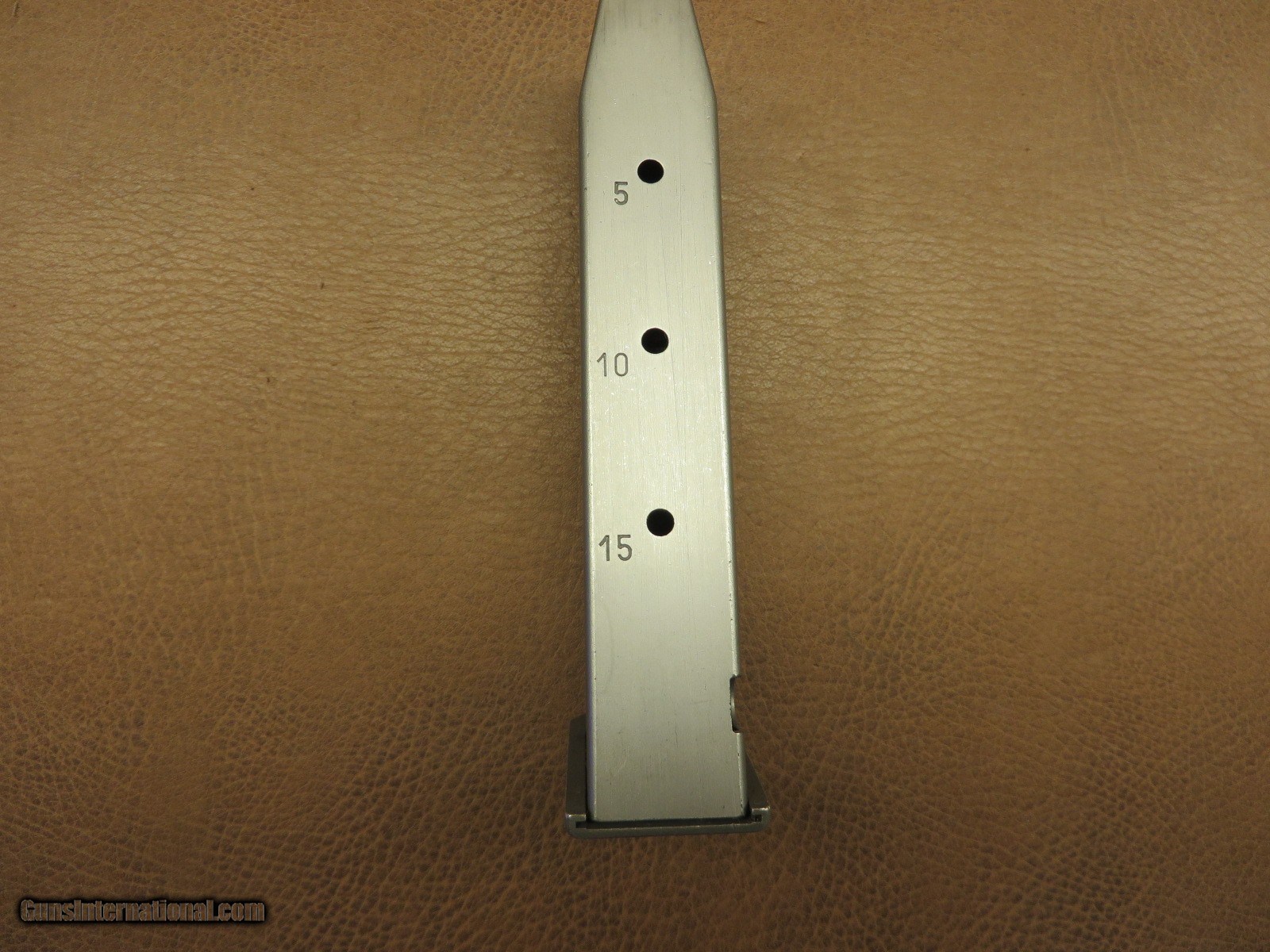 Description: Factory stainless steel 15 round 9MM mag. Looks new. SOLD |