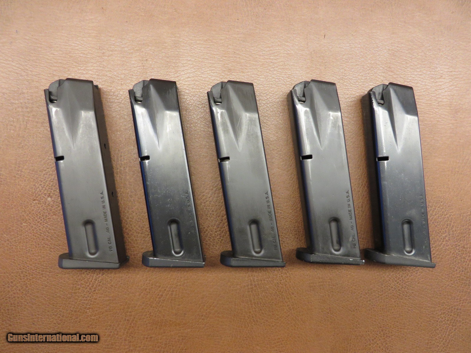 Description: Five factory 10 round .40 S&W magazines. Nice used condition. One is a little rough on the floorplate. All for $119.00. SOLD |
