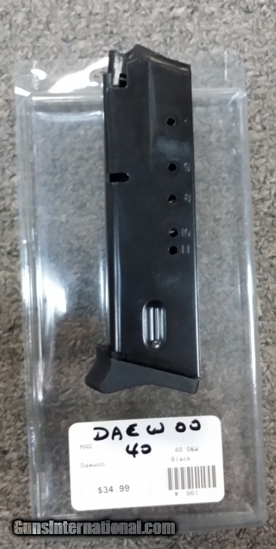 Description: New Daewoo 40 S&W Mag 11 rounds black. Shipping $7.00 SOLD |