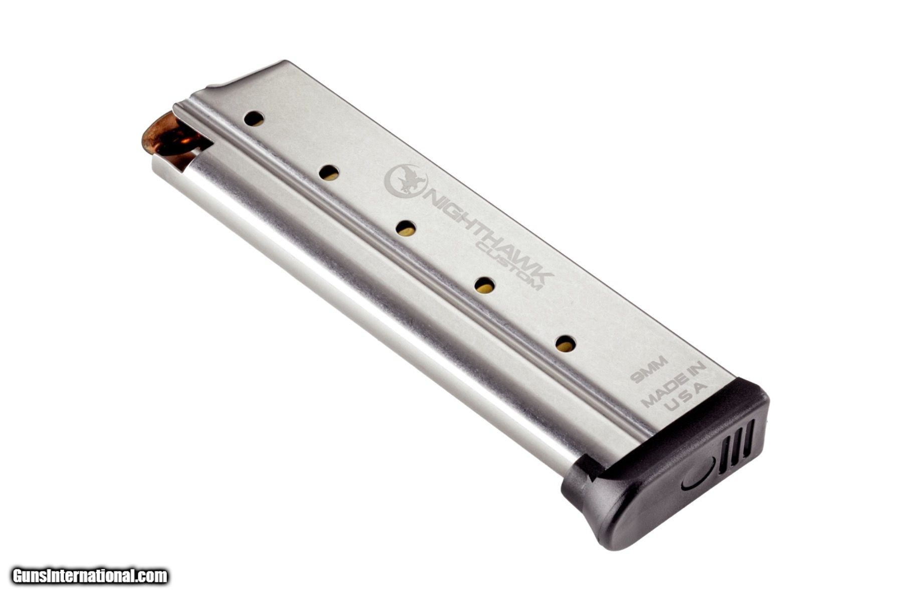Description: NOT LEGAL IN ALL AREAS. PLEASE CHECK YOUR LOCAL LAWS BEFORE ATTEMPTING PURCHASE. YOU MUST BE 21 TO PURCHASE MAGAZINES ON THIS SITE. AN ADULT SIGNATURE WILL BE REQUIRED FOR PRIVATE RESIDENCE DELIVERY. Nighthawk Custom manufactures the MG0039 as a premium OEM replacement magazine for 1911 pistols chambered in 9mm, delivering 10 round capacity with Government and Commander frame compatibility. This magazine is built entirely in the USA from heat treated stainless steel with precision engineering designed to maximize reliability and durability across all ammunition brands. Key Features