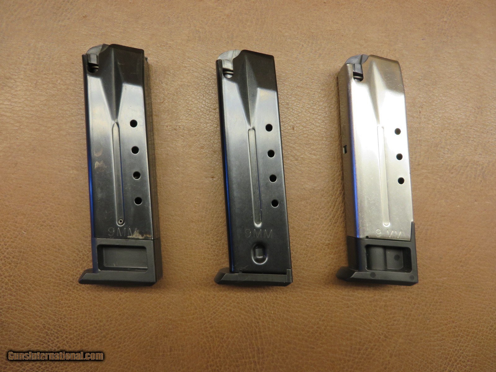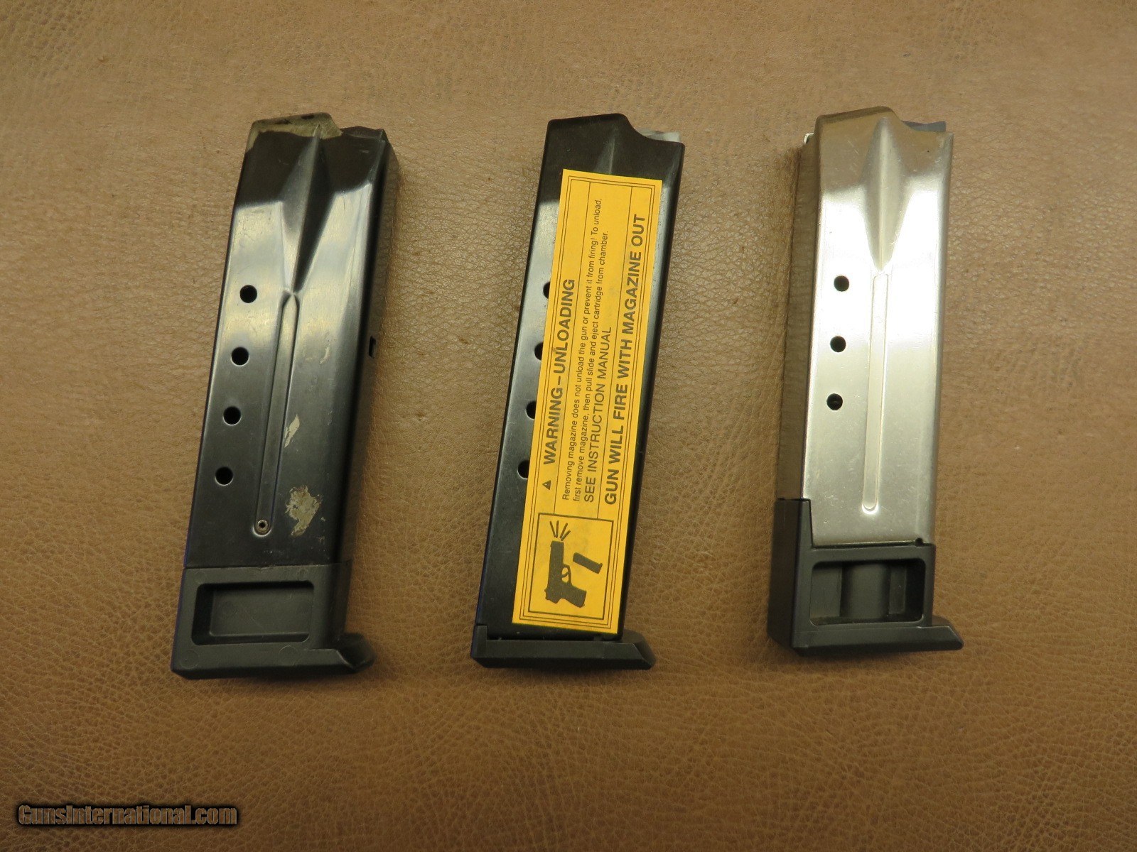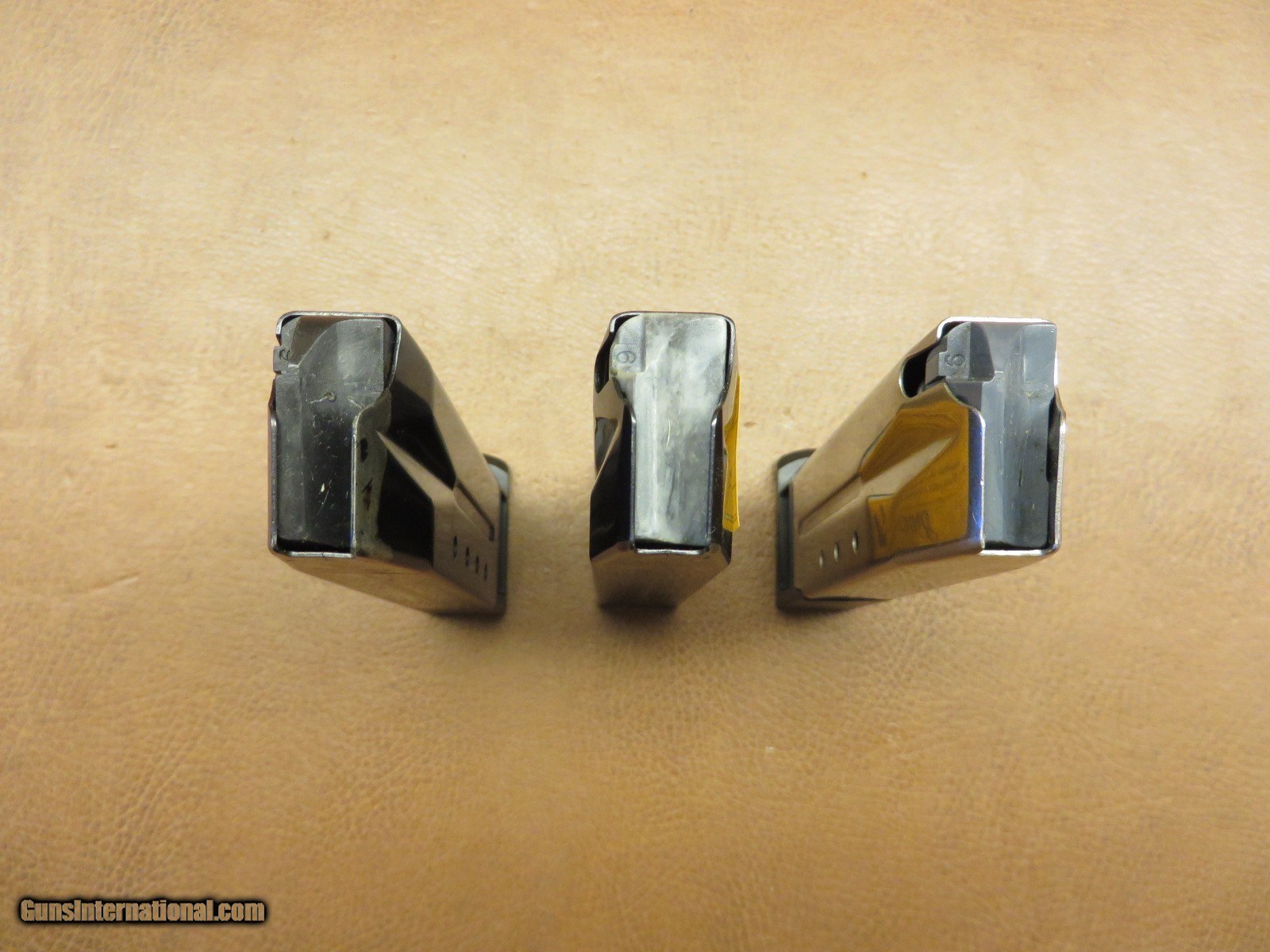Description: Factory 9MM mags. One new blue 15 round. One used blue 10 round. One used stainless 10 round. All 3 for $59.00. SOLD |