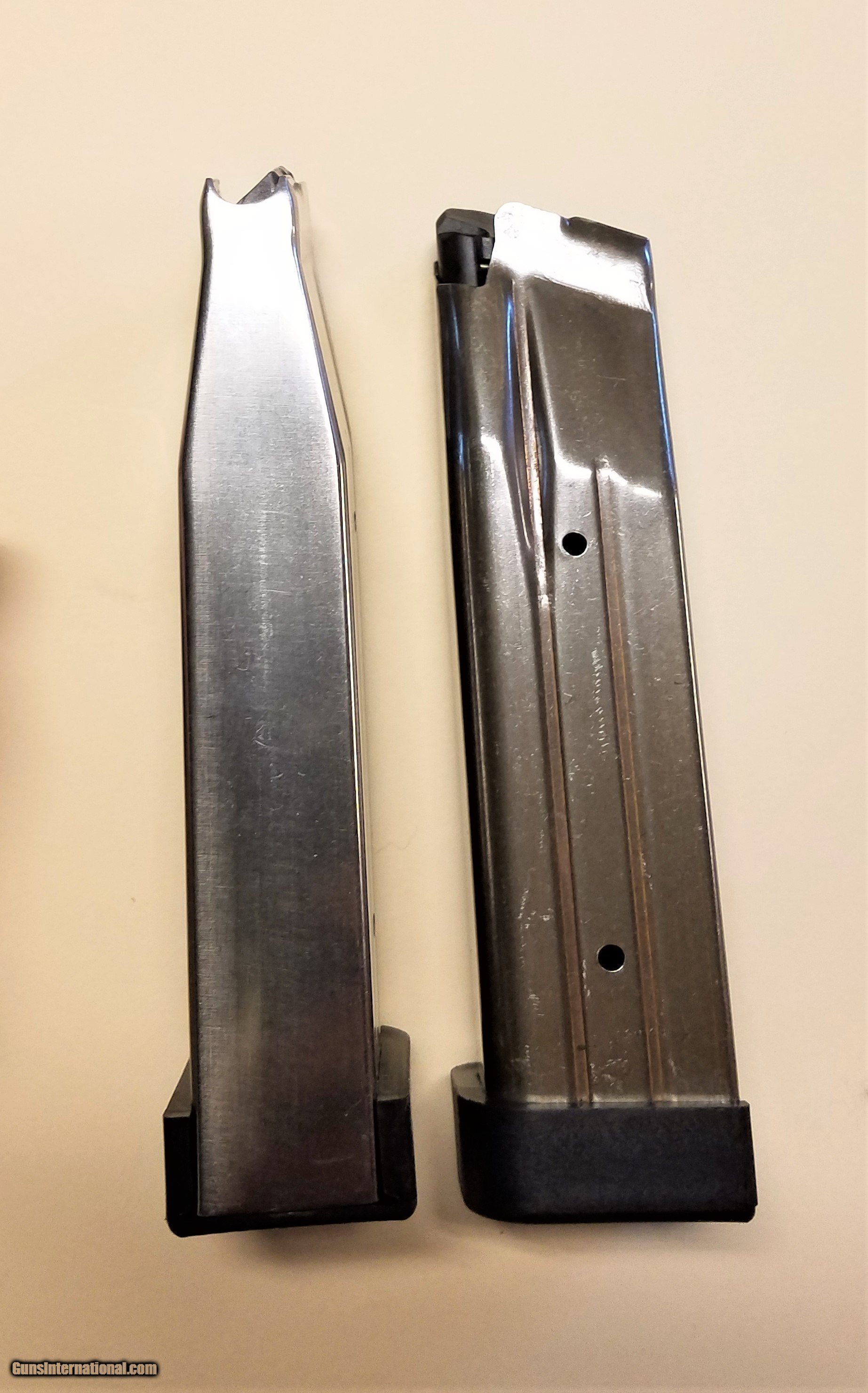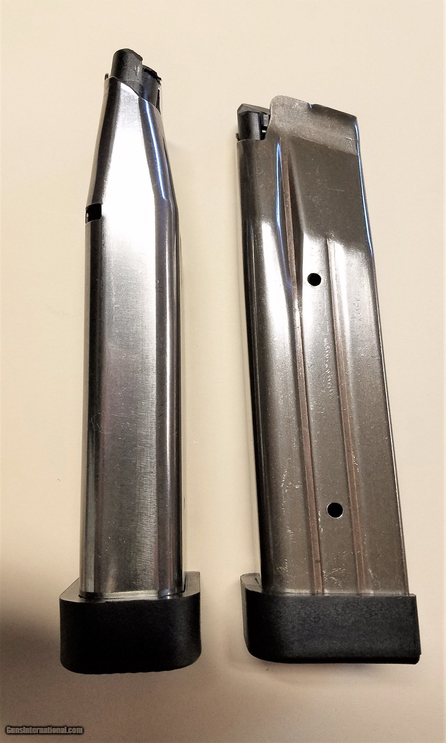 Description: Pair of genuine STI 2011 Gen I high capacity double-stack magazines for .45ACP; 140mm, 14 Rds. From Brazos Custom; stainless steel; built using STI components. Barely used. Selling as I am unable to compete in IPSC competition shooting any longer. Free shipping. SOLD Handgun Caliber: .45 ACP (.45 Auto) |