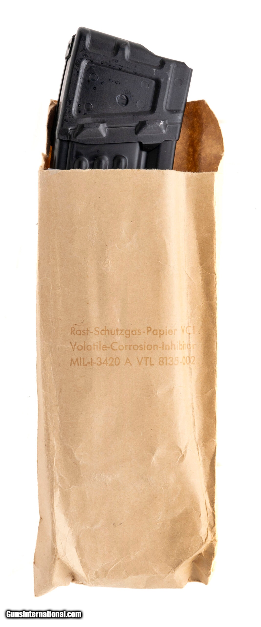 Description: "HK53 / HK93 / HK33 unmarked aluminum 40-round magazine in original corrosion inhibiting wax paper. SOLD |