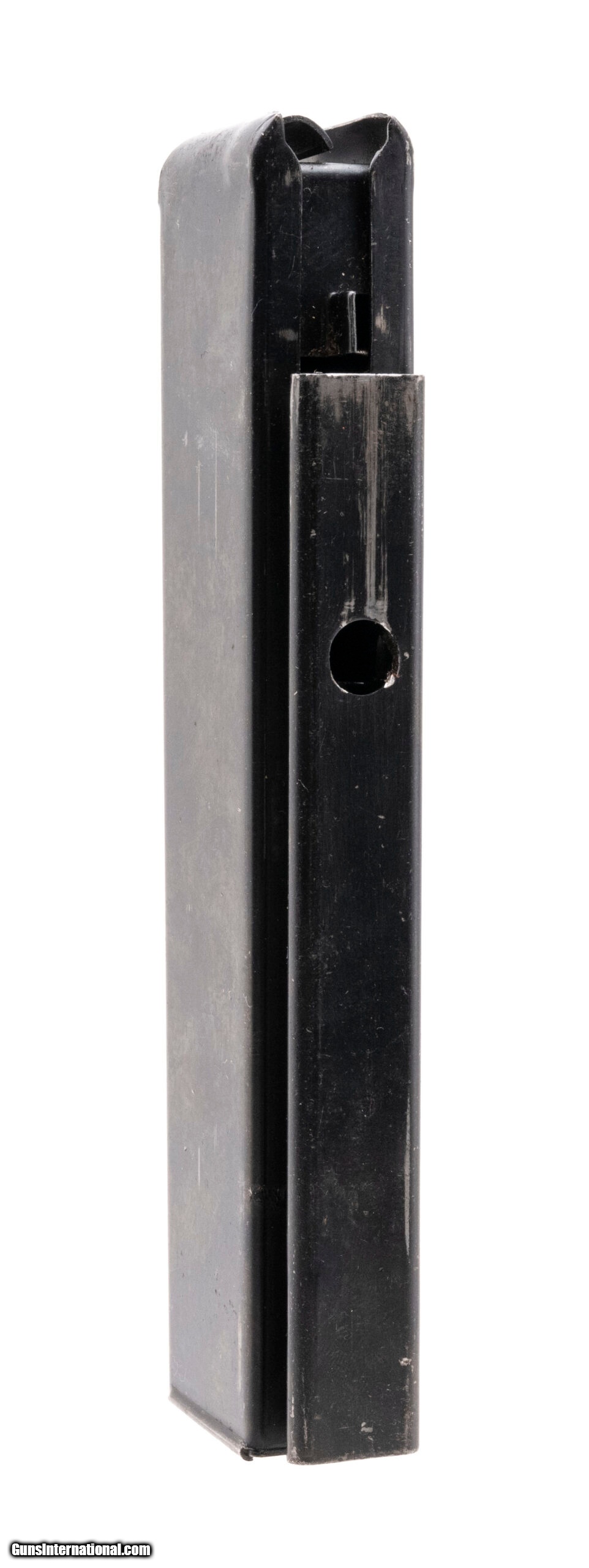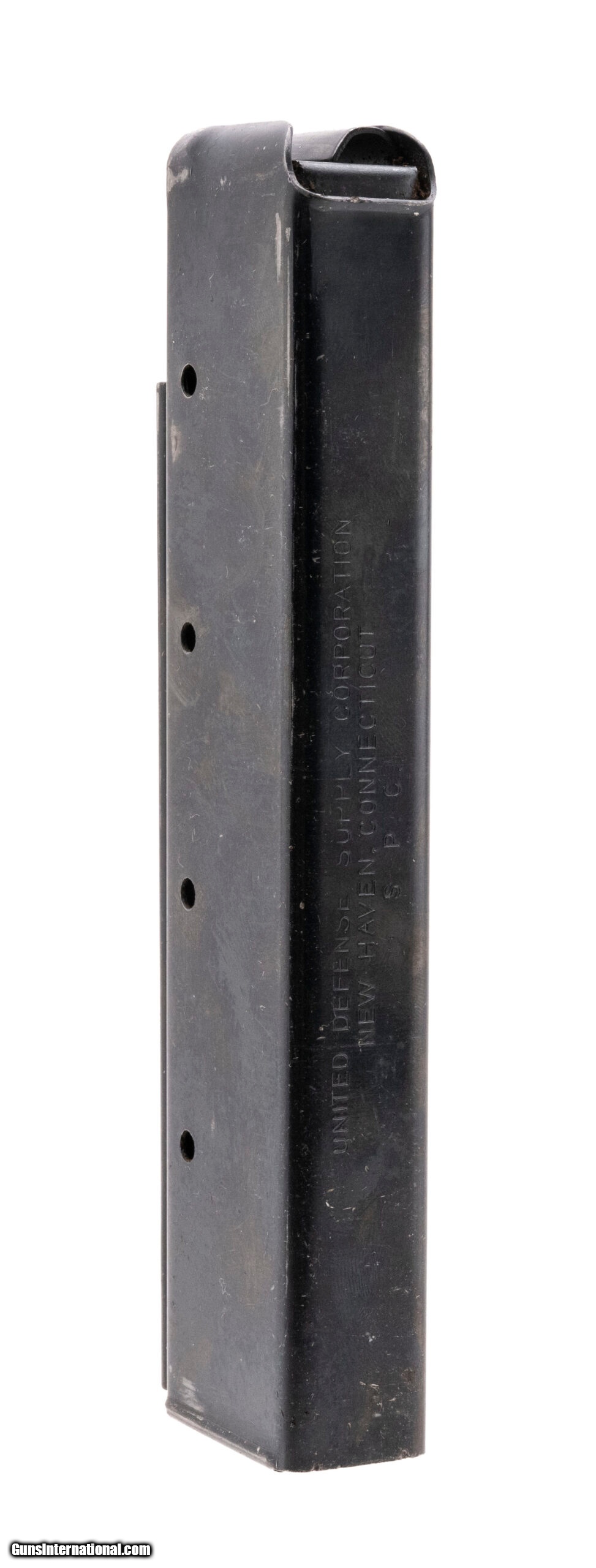 Description: "25-round magazine for the 9mm United Defense M42 SMG in excellent condition. Marked ""United Defense Supply Corporation - New Haven, Connecticut - S. P. C."" SOLD |