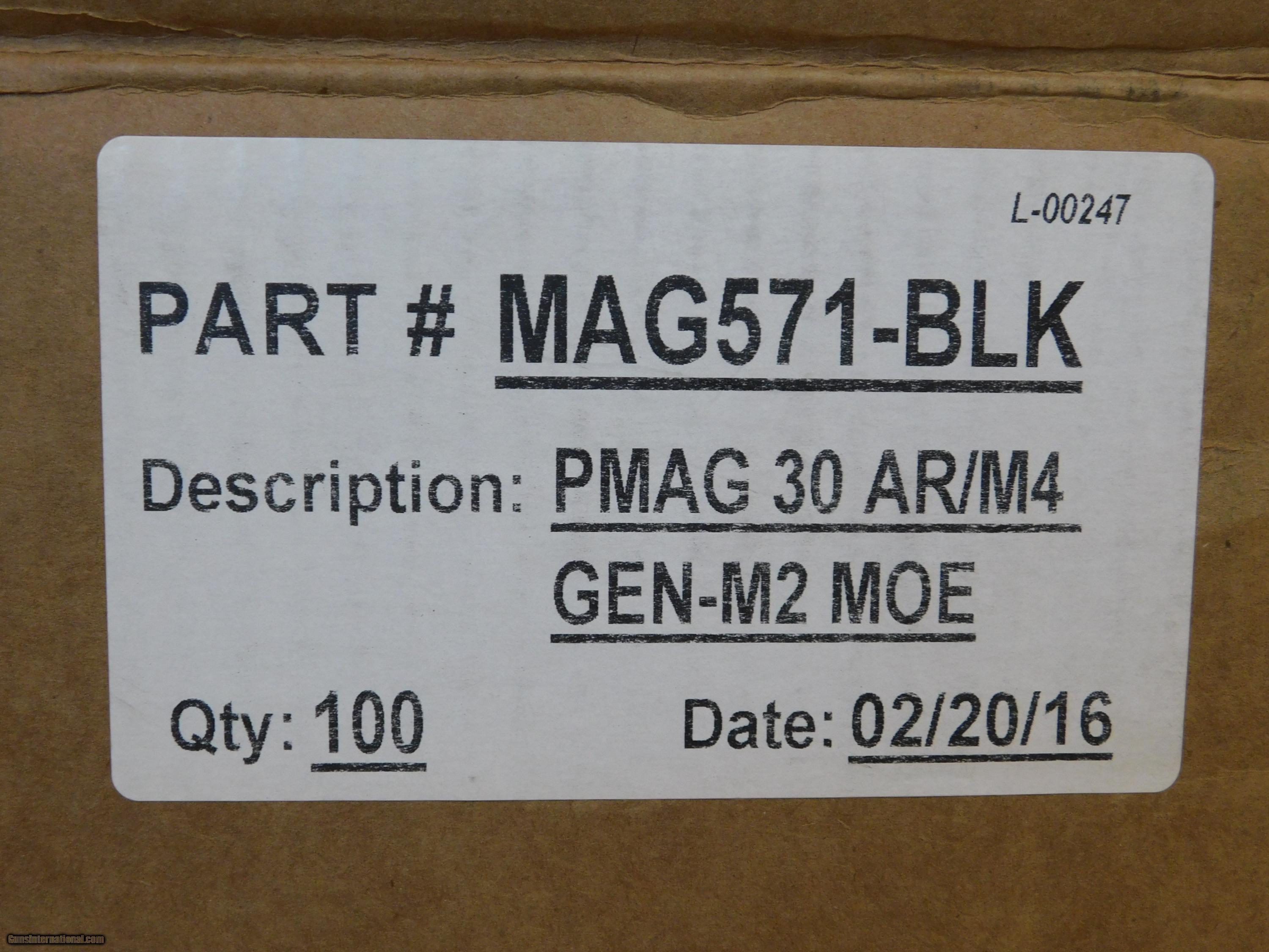 100 Magpul PMAG 30 AR/M4 Gen M2 MOE 30 Round Mag MAG571-BLK