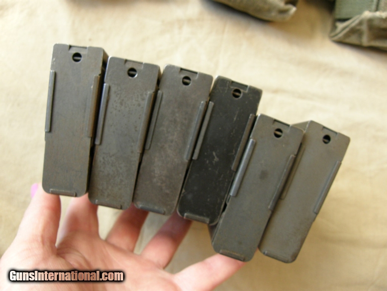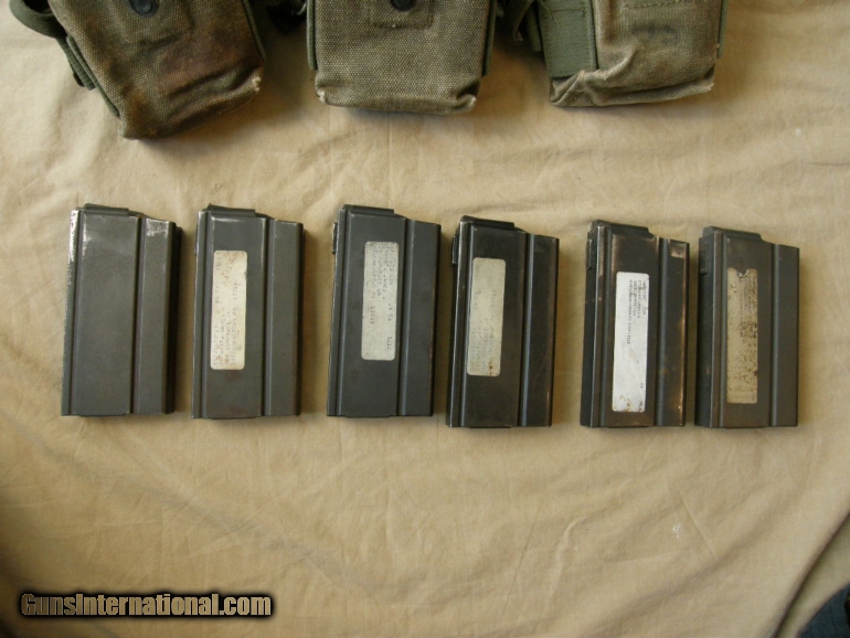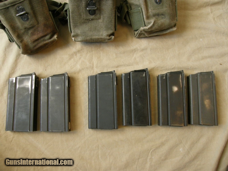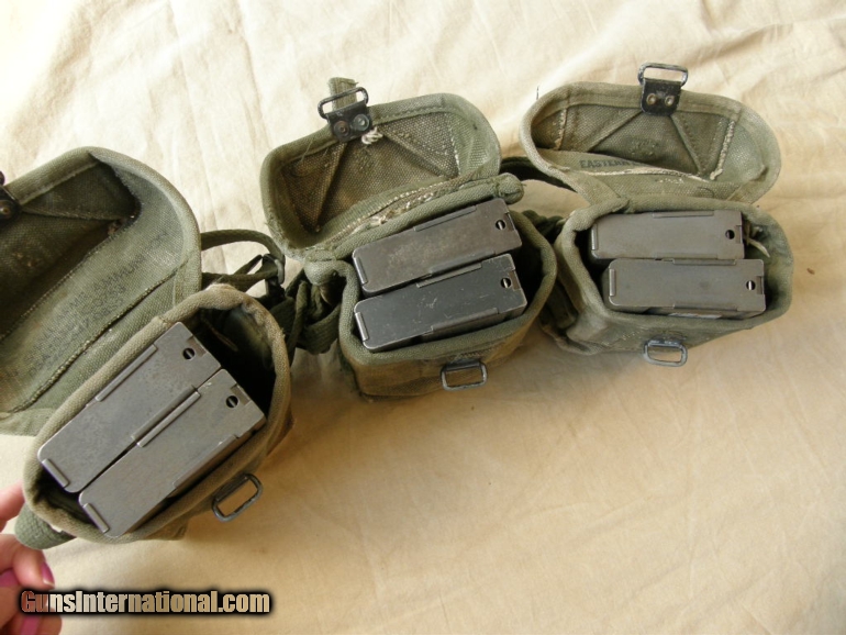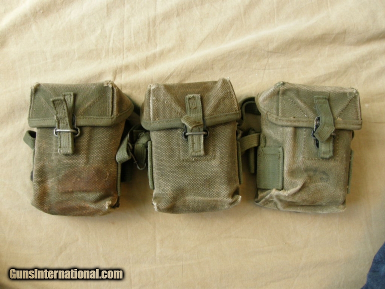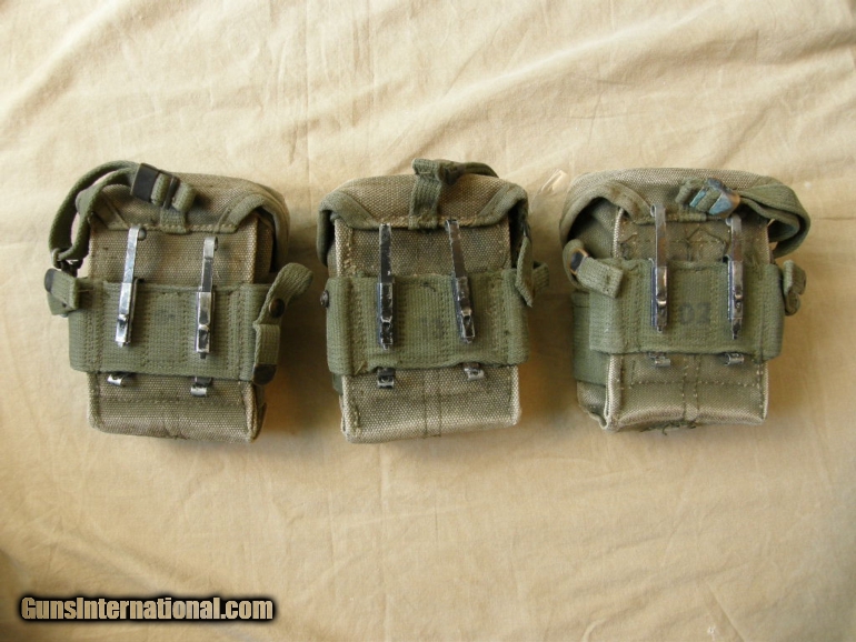 Description: These are original US military magazines in Vietnam era pouches. These had been used by a high power target shooter and still have labels on them with his name - they should come right off with a little cleaning. Mags and pouches do show use wear, but seem good and solid overall. ALL FIREARMS SHIP TO FFL 01 OR OTHER DEALER TYPE LICENSE ONLY AND MUST BE SIGNED FOR UPON DELIVERY. WE WILL ONLY SHIP C&R FIREARMS TO TYPE 03 LICENSE HOLDERS IF WE HAVE LISTED THE ITEM IN THE CURIO AND RELIC CATEGORY. NO INTERNATIONAL SHIPMENTS ON FIREARMS. No High Capacity Magazines to MA, IL, CA, NJ, MD, HI, CT, NY, CO, ETC. BLACK POWDER AND AIR GUNS REQUIRE COPY OF CURRENT DRIVERS LICENSE AND SIGNED STATEMENT- NO AIR GUNS OR BLACK POWDER FIREARMS WILL BE SOLD TO NEW JERSEY, PHILADELPHIA. NEW YORK CITY, MANHATTAN, BROOKLYN, BRONX, QUEENS, STATEN ISLAND, WASHINGTON D.C. ETC; Thank you for viewing our inventory and we look forward to helping you expand your collection.-VISA/ MC/ DISC/ AM EX* MONEY ORDERS* CHECKS* ALL CHECKS NEED TO CLEAR-NO PAYPAL . Buyer pays USPS costs {and 6% PA SALES TAX in PA}. Payment must be received within 7 days of 's invoice. We do not test fire used weapons. All items sold as is where is-we make no claims as to the safety or serviceability of any item and offer no warranty or guarantee on used items. We strongly recommend that you have any used weapon inspected by a competent licensed gunsmith for safety before use Trigger lock is provided free of charge upon buyer's request. We strongly recommend that you follow only the manufacturers recommendations on loading and follow established safety and handling procedures. Safety guidelines and loading information can be obtained through the NRA, manufacturer's s and ATF. Be sure you know your state and local laws pertaining to the item you are purchasing. We will not ship items prohibited in your locality- no exceptions. We gladly honor a 3 day inspection / return period for a refund of purchase price minus shipping costs. -- SOLD |