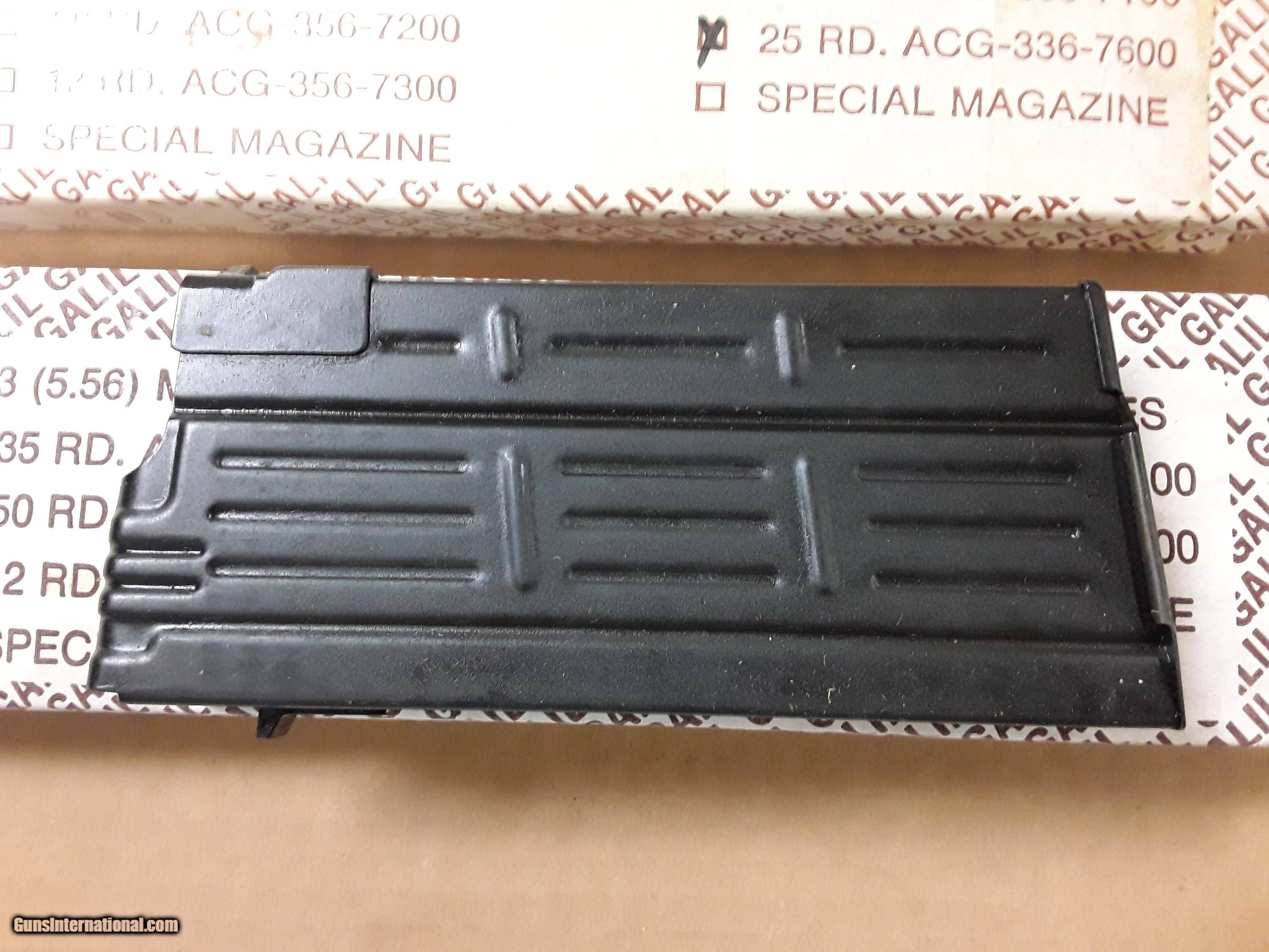 Description: ACTION ARMS GALIL ARM.308CAL 25RND MAGAZINE NEW IN BOX, NOS, DATED 87/88 $250.00EA. DELIVERED TWO AVAILABLE SOLD |