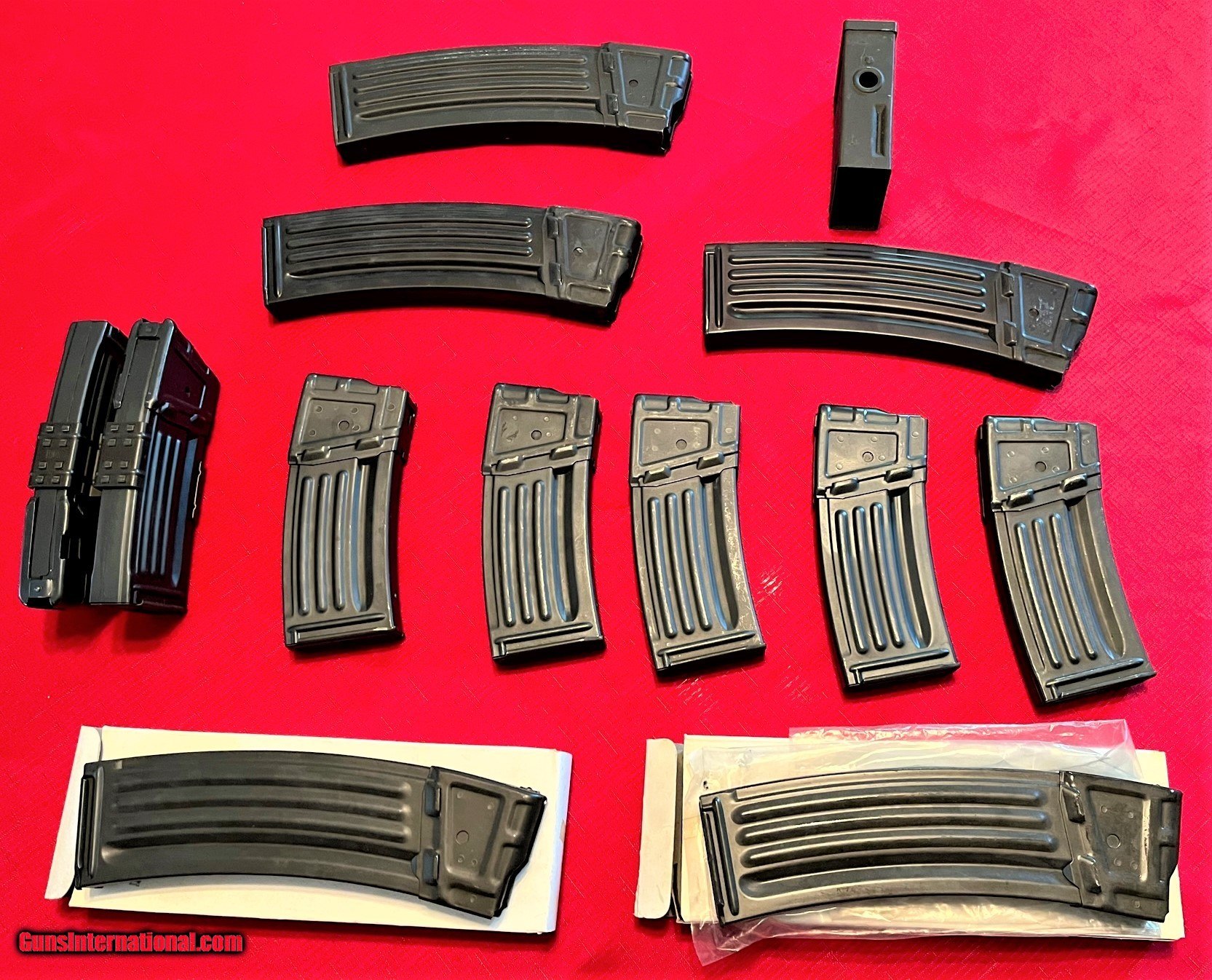 Description: For sale are factory magazines and accessories for a Heckler & Koch 93 in .223 caliber, There are five steel 20 round used magazines (picture 3) for $45 apiece. There are three used 30 round aluminum magazines (pics 6 & 7) for $35 apiece. Also there are two new 30 round steel magazines in the boxes for $60 apiece. How about two new 20 round magazines joined by a factory HK clamp (pics 4 & 5) for $150 and a magazine loading tool (pics 8 & 9) for $50. Shipping to be determined by location and quantity purchased. ENSURE POSSESSION OF THESE MAGAZINES IS LEGAL IN YOUR LOCALE--THERE IS NO RETURNS OR REFUNDS! SOLD Rifle Caliber: .223 Remington |