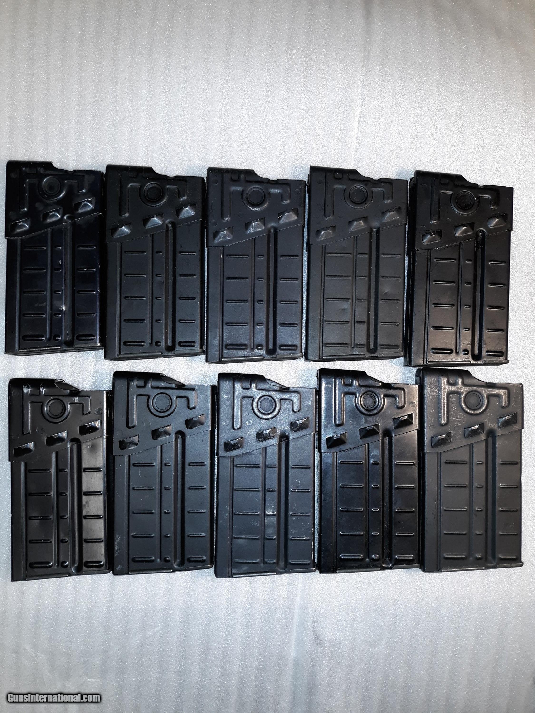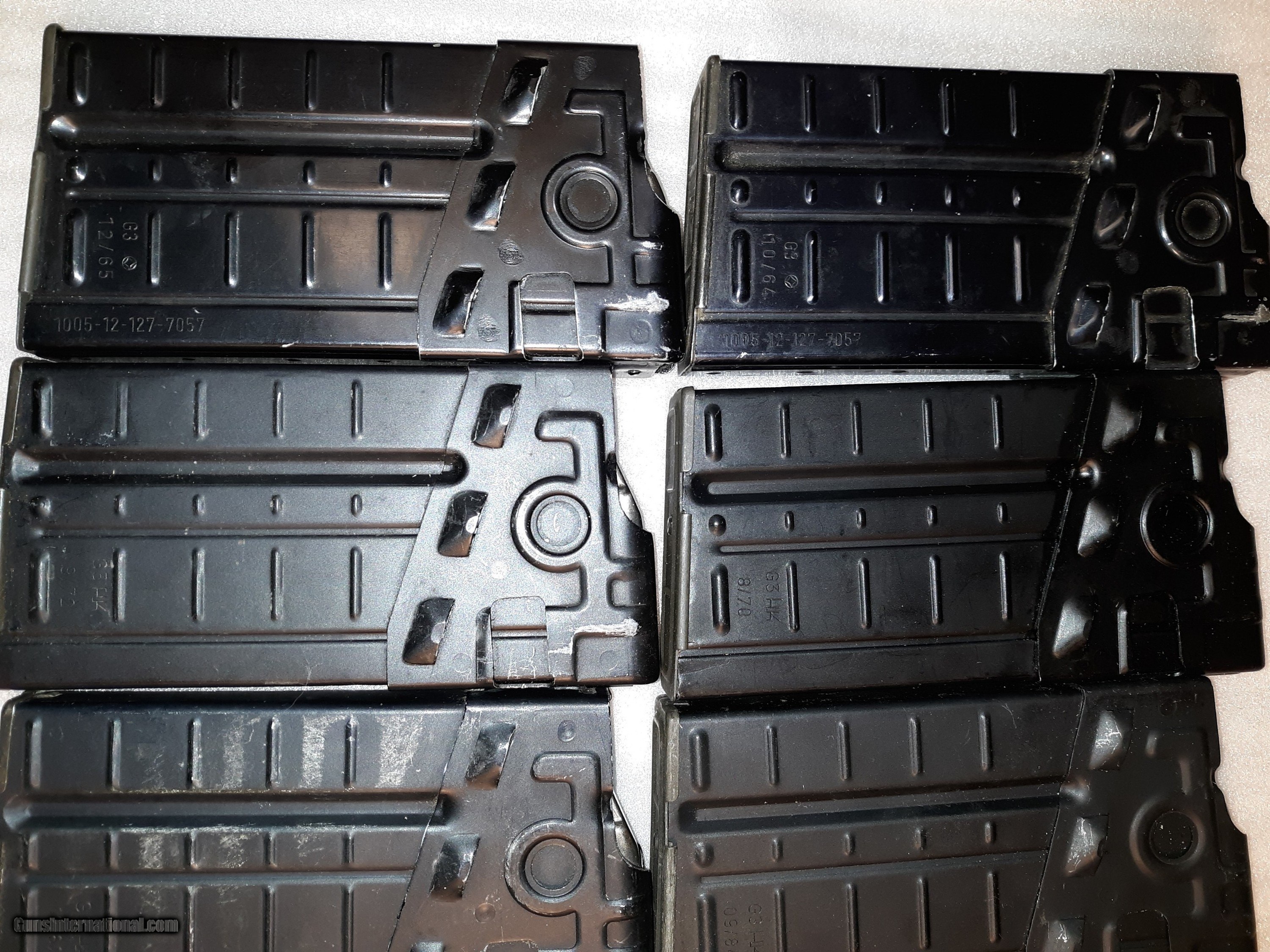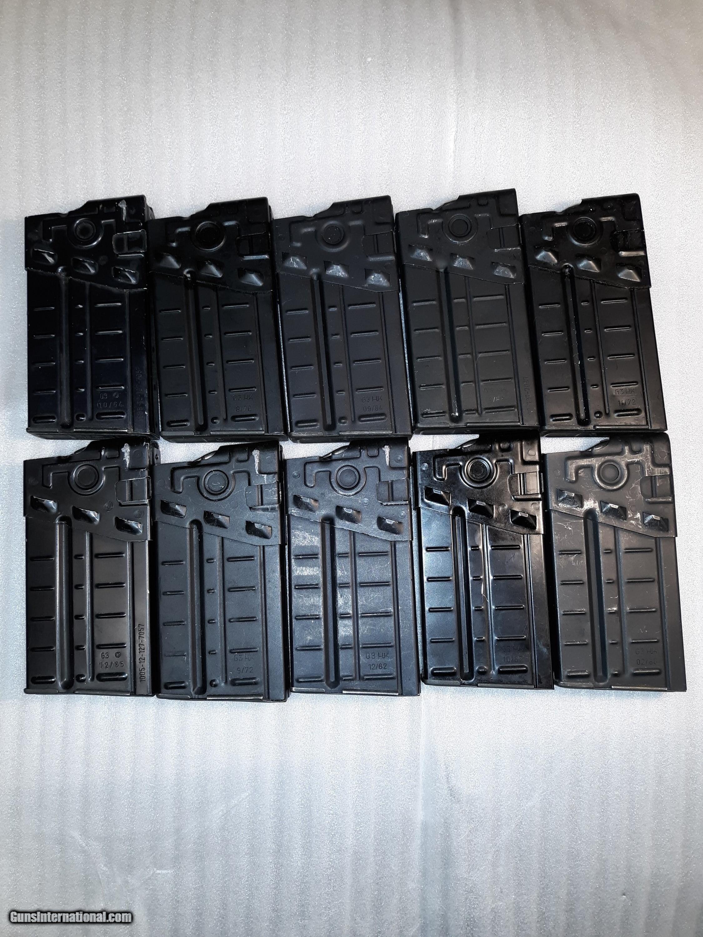 Description: For sale are 10 German magazines for the HK 91 and clones. These are marked G3 HK and are dated from 12/62 through 02/88 but all are in very good condition and all 10 are the aluminum constructed ones. These are 20 round magazines for the 7.62 x 51 round and of course the .308 rounds fit as well. Priced at $55 plus the cost of shipping, within the US only. SOLD |
