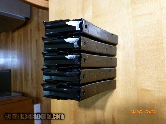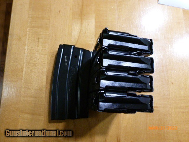Description: Lot of five (5) Ruger Mini 14 (20) round magazines. Unused new condition marked BLEMISH. 5.56 x 45 NATO / .223 Rem. $90.00 shipped. Payment by cashiers check or USPS money order only. No sales to CA, CT HI, MD, MA, NJ, NY or any place that restricts these magazines. Sorry. No texts please. SOLD Rifle Caliber: 5.56x45mm NATO |