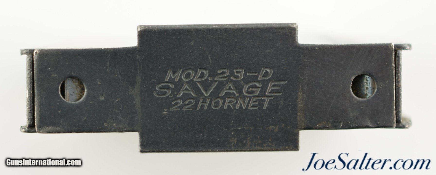 Description: This is a Savage 23 -D Factory 4rd 22 Hornet Steel Magazine in excellent condition with some signs of use with scattered light oxidation and fully functional.; SOLD |