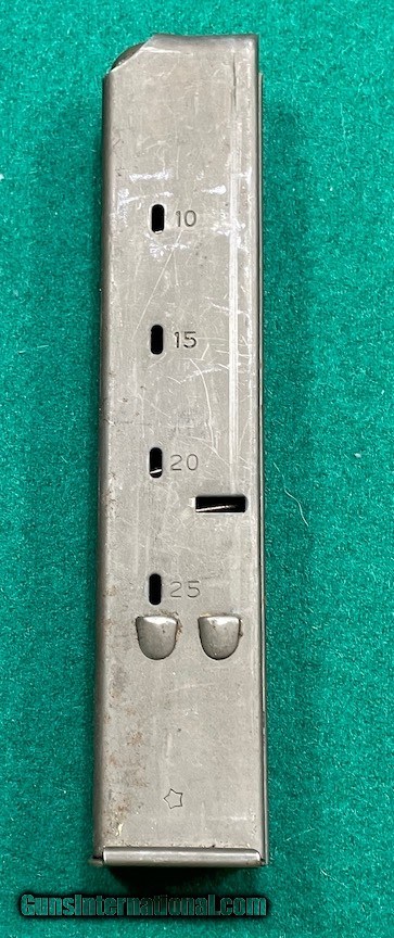 Description: This is an Uzi 25-round magazine for the Uzi carbine or submachine gun for sale. In good shape and perfectly functional. $35 + 9.00 shipping. Money order only. SOLD Rifle Caliber: 9x19mm Parabellum (9mm Luger, 9x19mm NATO) |