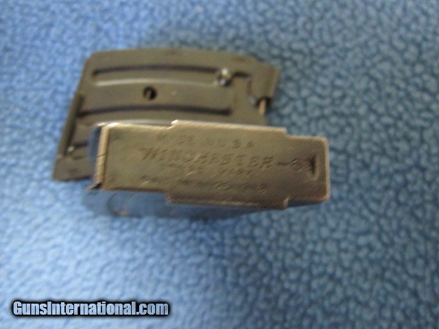 Description: Factory original five-round clip for Pre-64 Winchester 22 rimfire bolt actions including Model 52 Target Rifle and Sporter, Model 75 Target and Sporter, Model 69, etc. It has "Winchester" and patent dates stamped on the bottom. Excellent condition. Price is $55 shipped. SOLD |