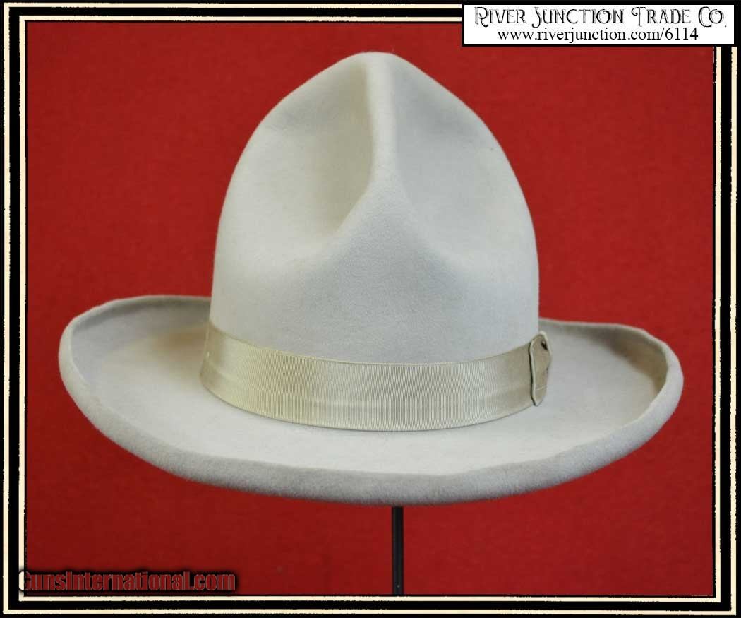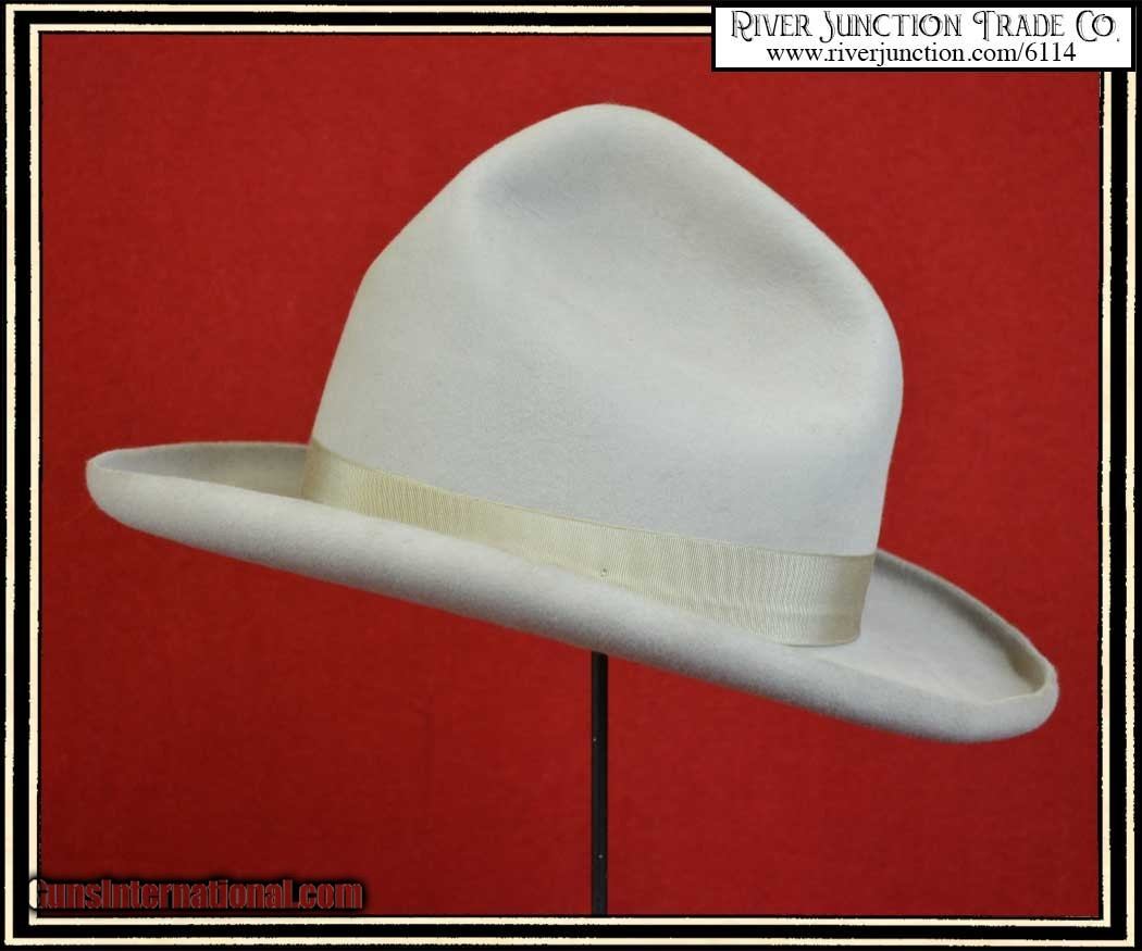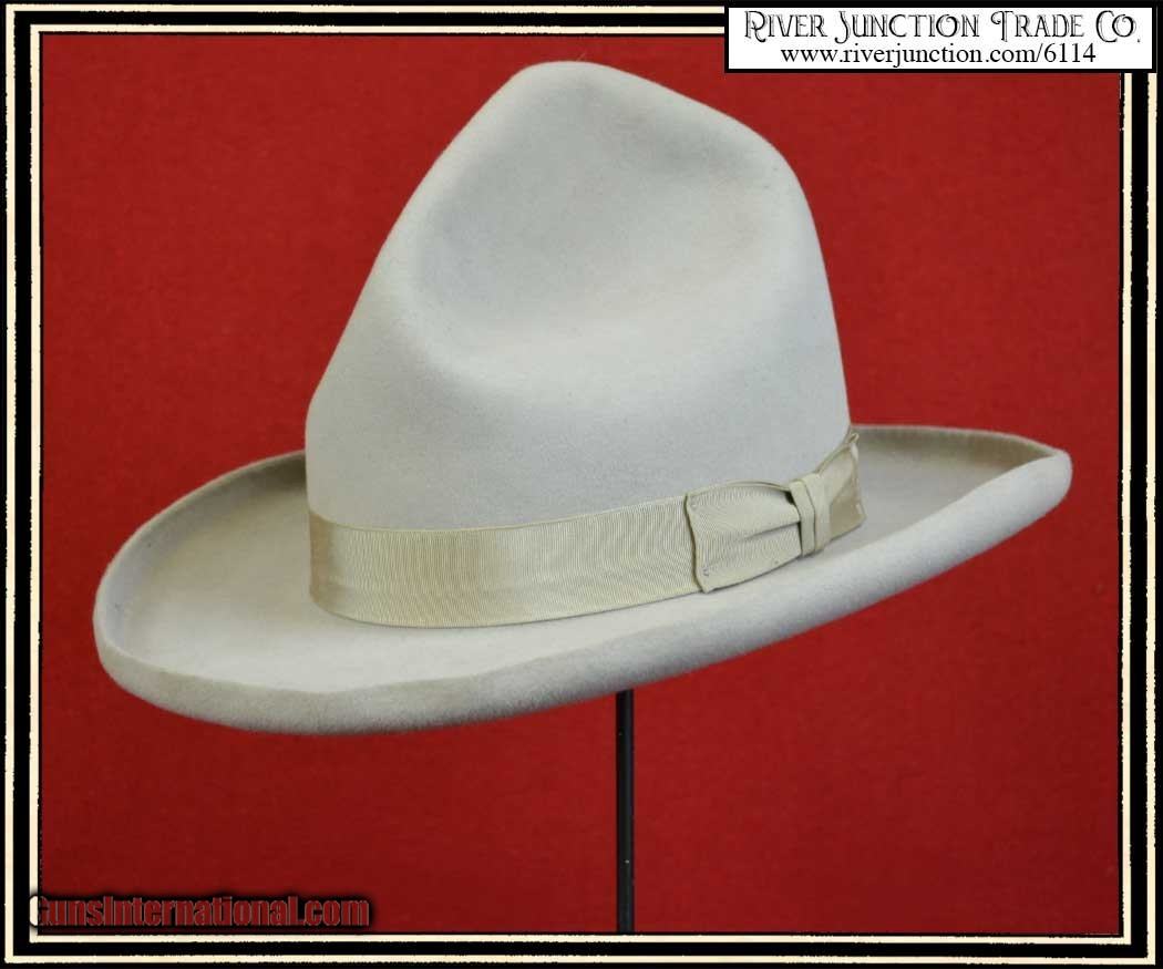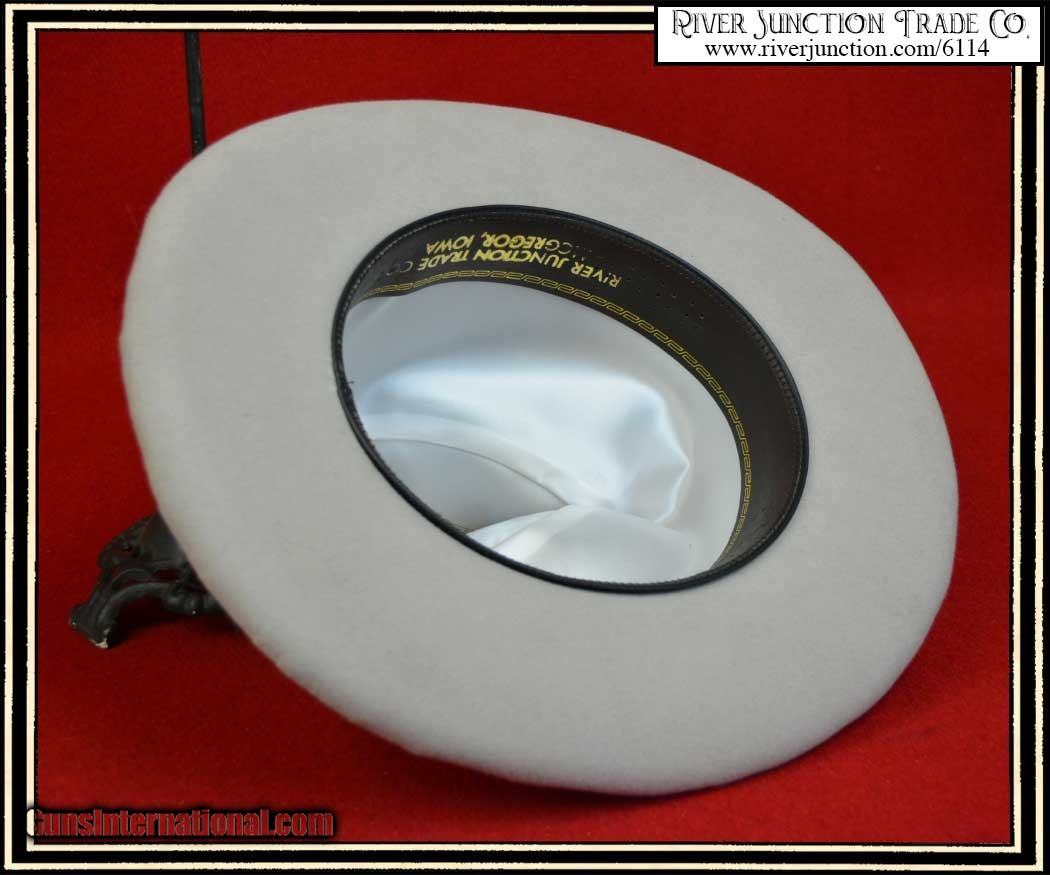 Description: Pre-Steamed and Styled by hand, this is a unique and one of a kind hat. Hand styled with attention to detail. This custom styled hat with a classic cowboy look. Features a 6 1/4 in. crown with 3 1/4 in. brim with Kettle curl. Payment: Item, can be ordered on line with a credit card or paypal on our sight. Just Google (riverjunction) and type in the River Junction Trade Co. item number (6114) in the search box. Before you checkout you will see shipping cost and total. OR If you prefer: Pay by cash, postal money order, cashiers check, personal & business checks. We wait for checks to clear. We always answer questions and entertain offers. Have questions? Call me 563-880-4588. Jim SOLD |
