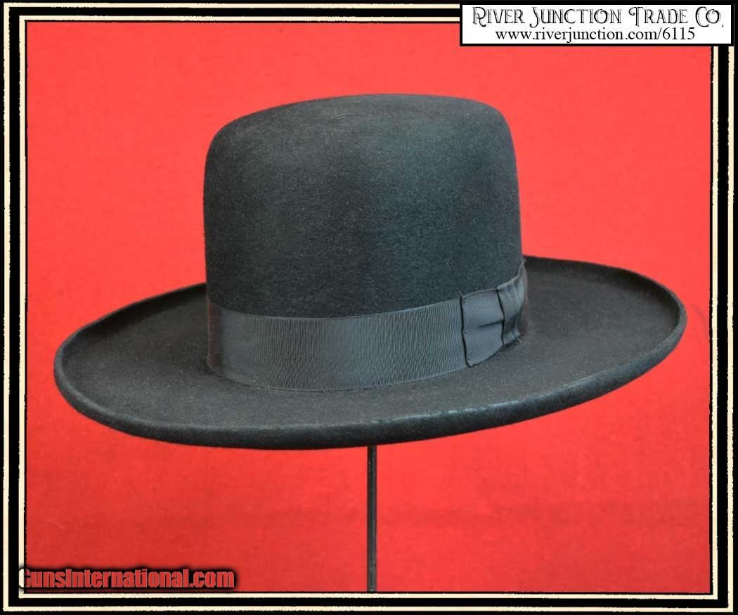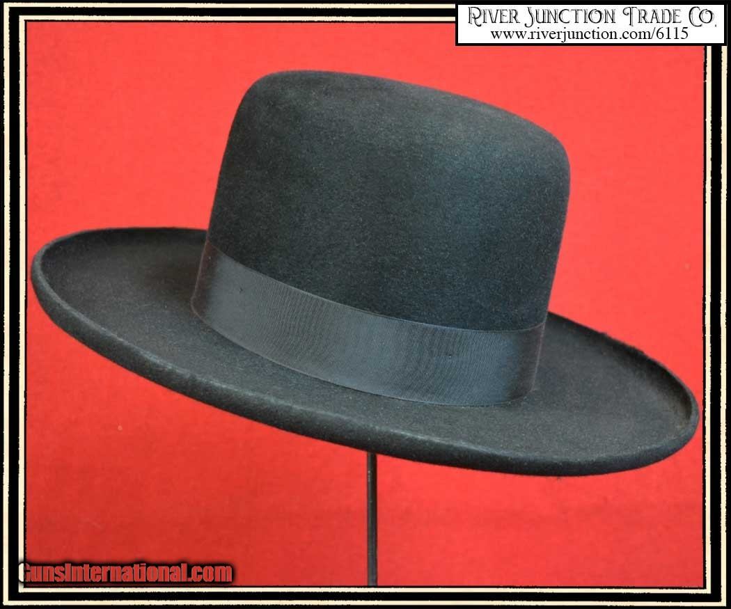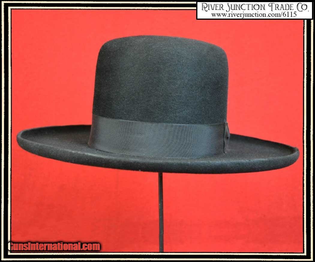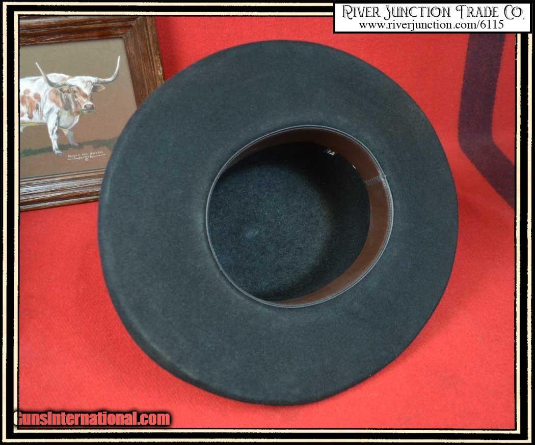 Description: This classic Open Crown hat with an Old West look. Features a 5 3/4 in. crown with 3 1/2 in. brim with Kettle curl. size 7 5/8 10X Hat NOTE: At this Price the Hat is NON Returnable for any Reason Payment: Item, can be ordered on line with a credit card or paypal on our sight. Just Google (riverjunction) and type in the River Junction Trade Co. item number (6115) in the search box. Before you checkout you will see shipping cost and total. OR If you prefer: Pay by cash, postal money order, cashiers check, personal & business checks. We wait for checks to clear. We always answer questions and entertain offers. Have questions? Call me 563-880-4588. Jim SOLD |