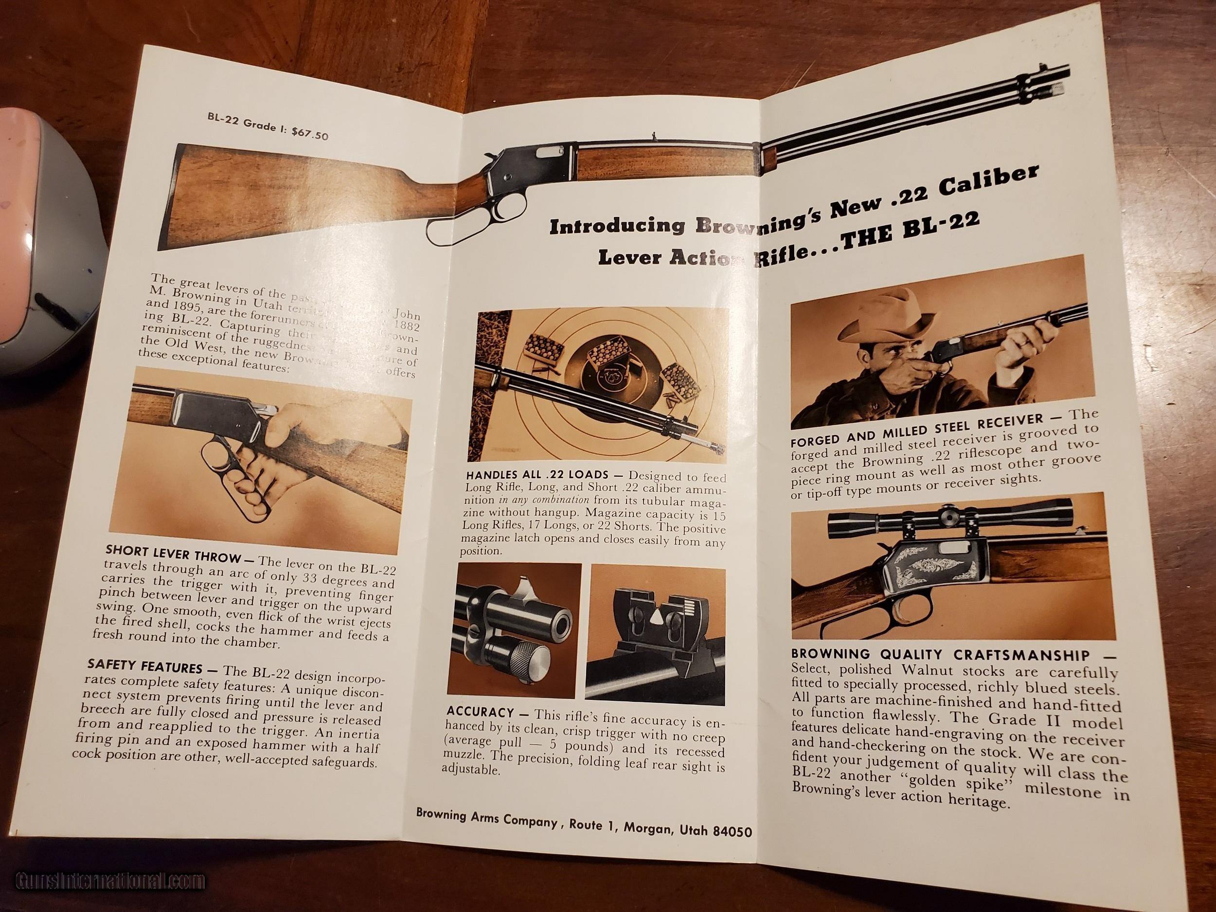 Description: 1969 BROWNING PAMPLET FOR THE BL-22 SOLD |