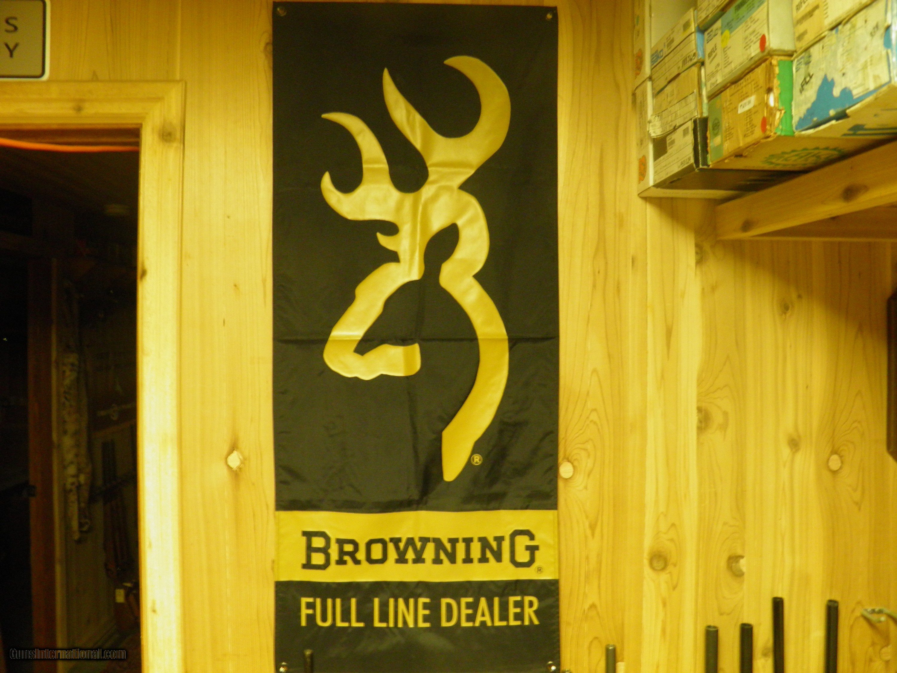 Description: BROWNING DEALER BANNERS #1 BLACK, FULL LINE DEALER IN WHITE LETTERS, GOLD FRINGE ON BOTTOM, GOLD CORD ON TOP, MEASURES 32" HIGH X 22" WIDE, "SOLD", #2 BLACK AND BURGANDY, BROWNING THE BEST THERE IS IN WHITE LETTERS, MEASURES 45" WIDE X 20" HIGH $119.95, #3 BLACK AND GOLD , BROWNING FULL LINE DEALER WITH LARGE BUCKMARK, MEASURES 45" HIGH X 20" WIDE $119.95 SOLD |