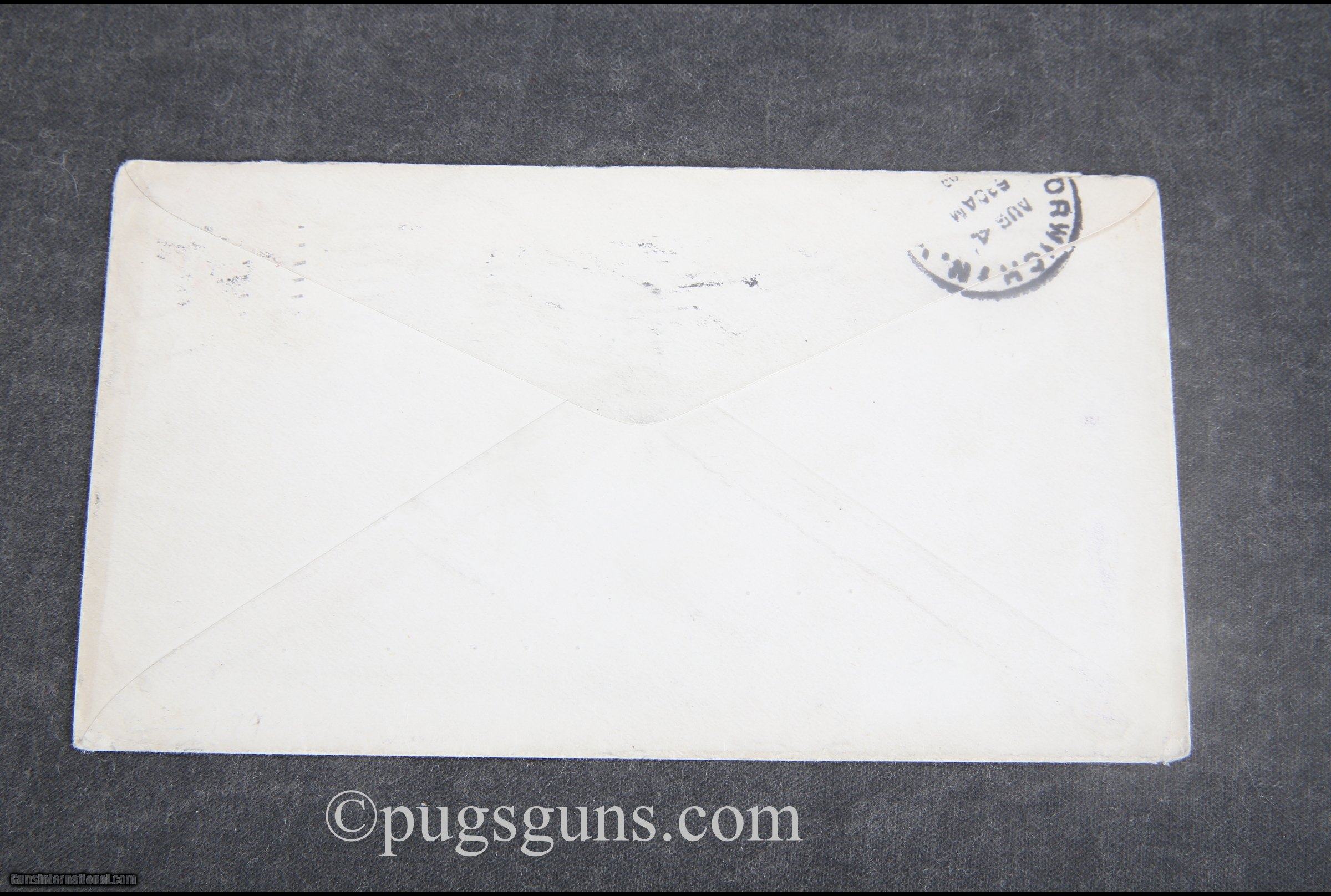 Description: "Mailed in 1909 to \"Mr. N. L. Satchell, Sec. Chenango Co. F. G. & G. Club, Norwich N.y.\" 3.5x6.5 inches SOLD Manufacturer: Lefever Model: Envelope |