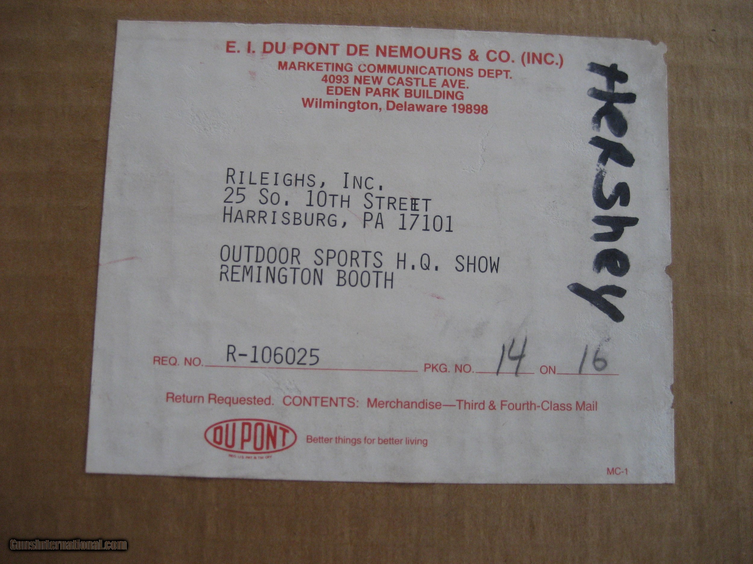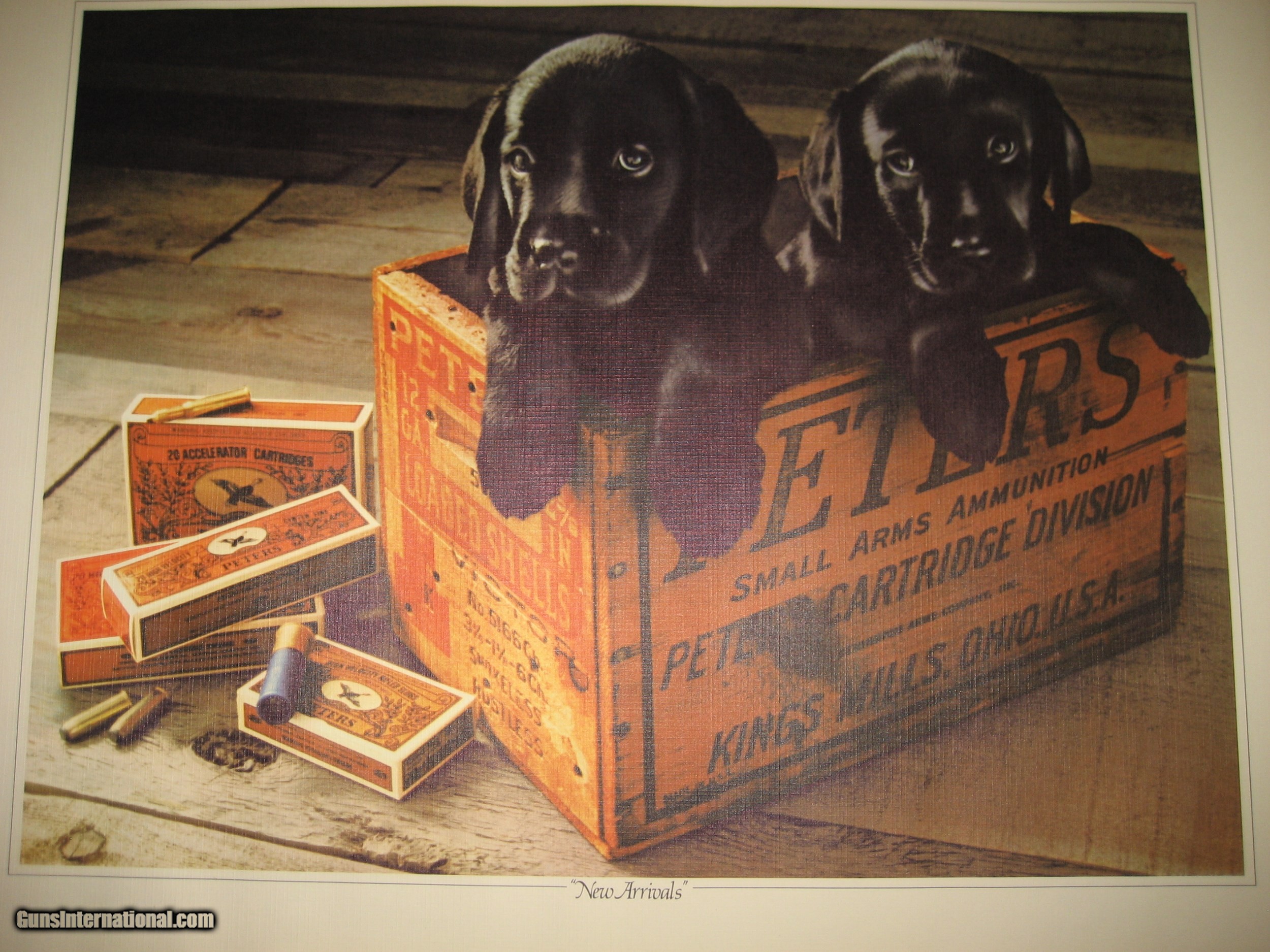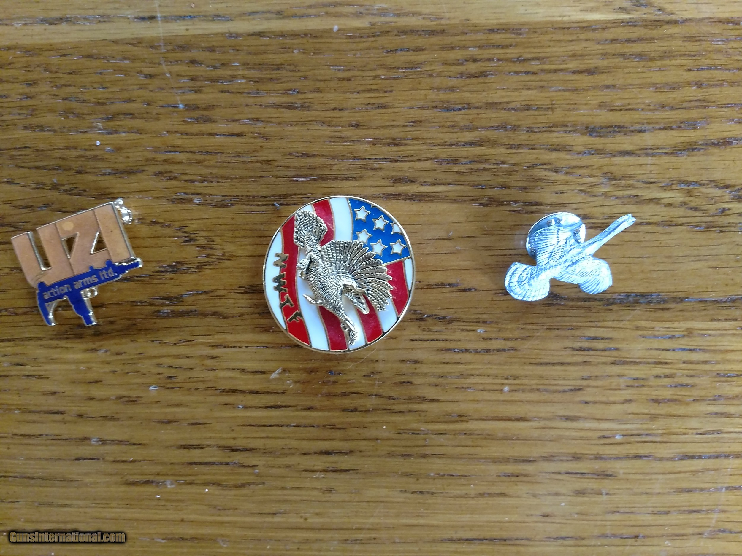 Description: several advertising items priced as follows: Marlin gun dealer counter mats: $50 + shipping/ per mat Peters "New Arrivals" lab puppy pictures: 2 each $95 + shipping in original shipping flat from Dupont Winchester AA hat pins/lapel pins/tie tacs: $9/ea + shipping or 4 for $39 shipped FREE Marlin iron on patches: $9 + shipping Marlin "is it loaded" items for in trigger guard. 36 of them for $12 shipped FREE Misc pins: UZI, NWTF, turkey pin $2/ea + ship ping or $10 for all 3 FREE shipping Marlin stickers(look great on your gun safe) 4 ea. For $20/shipped SOLD |