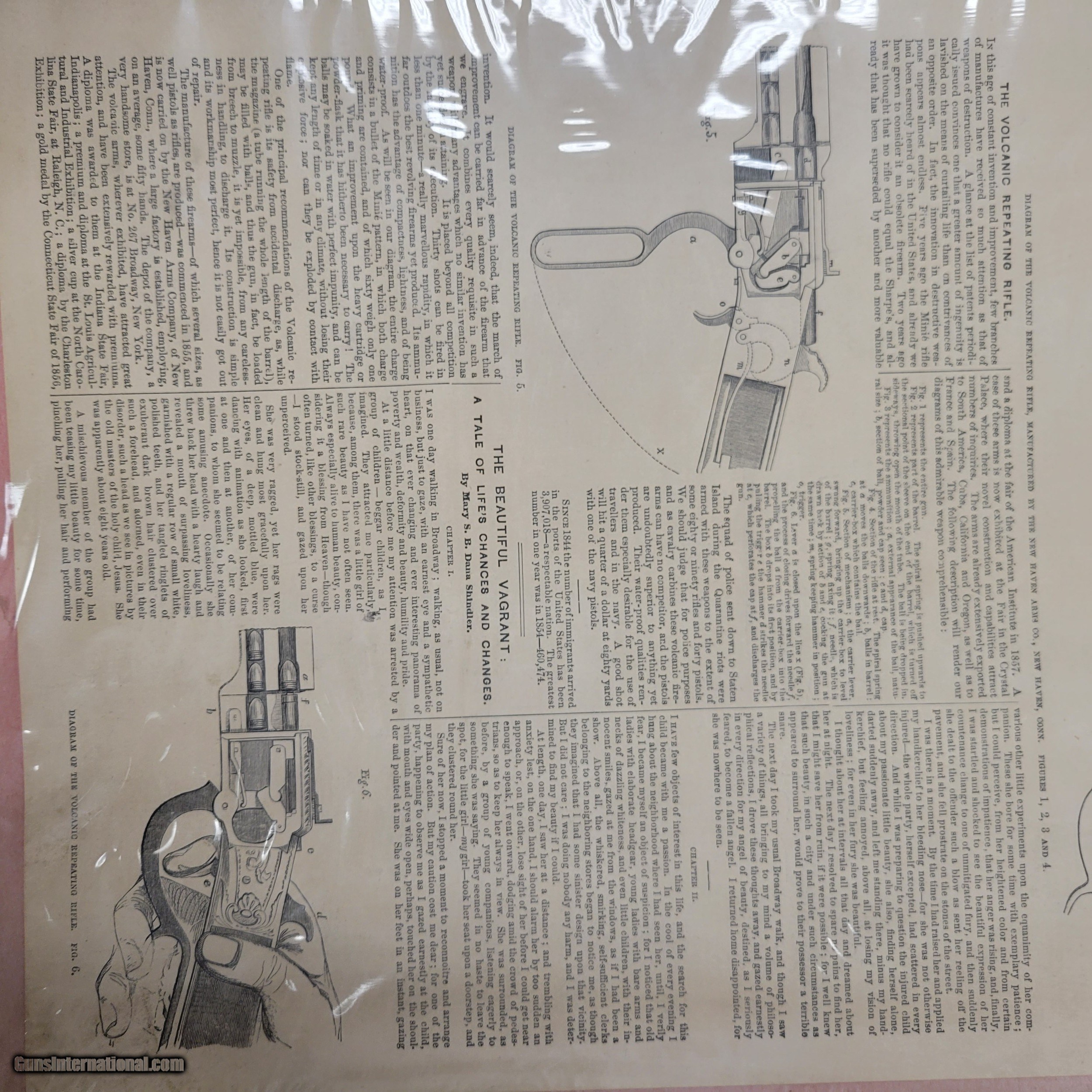 Description: Here is the only type of advertisement for the Volcanic Carbine. It is the same as the the one pictured in Ed Lewis and Dr. Rutter's book on Volcanics on page 121. These are very rare and a must have for the Volcanic collector. Roughly 15"x11". Suitable for framing. SOLD |
