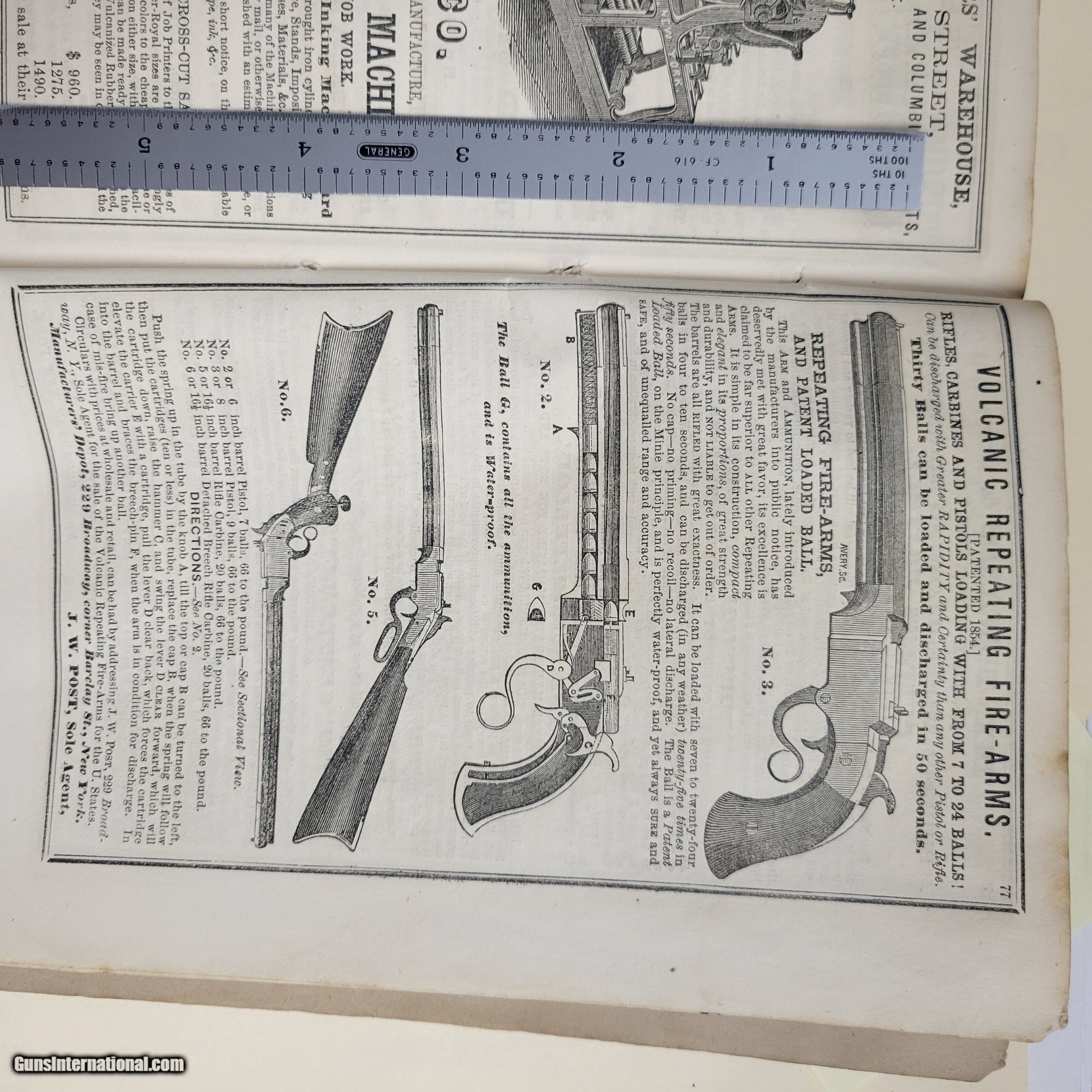 Description: Here is an original advertisement from 1857 listing JW Post as the sole agent. This ad is the only type to show the pistol carbine in the advertisement. Almost all are pistols with only one other one showing a carbine. These are very rare and the advertisement is still attached in the original almanac. Guaranteed original. SOLD Antique: Yes |