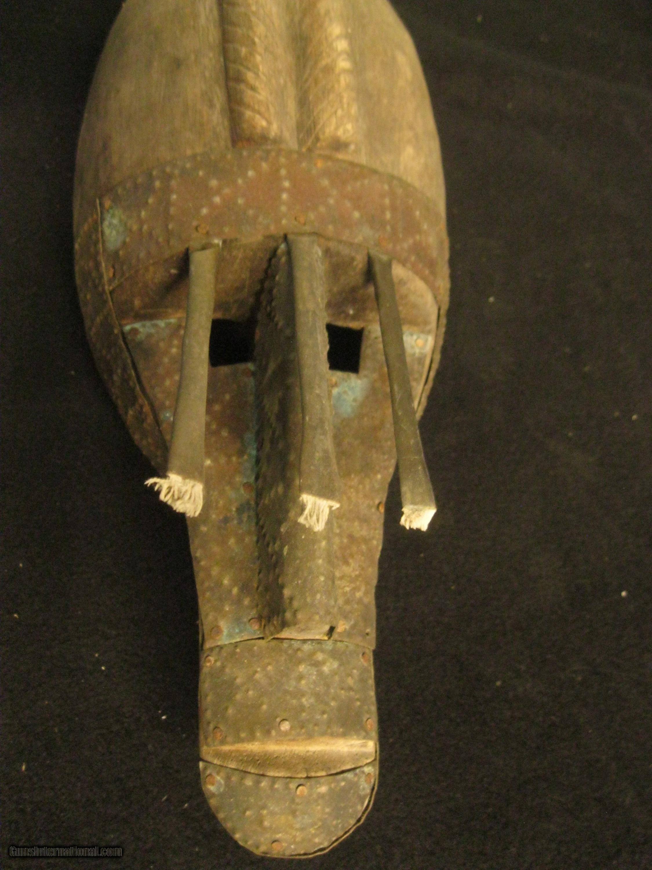 Description: Antique Tribal Mask Wood & Tin Africa Indonesia New Guinea Shipping $19 SOLD |