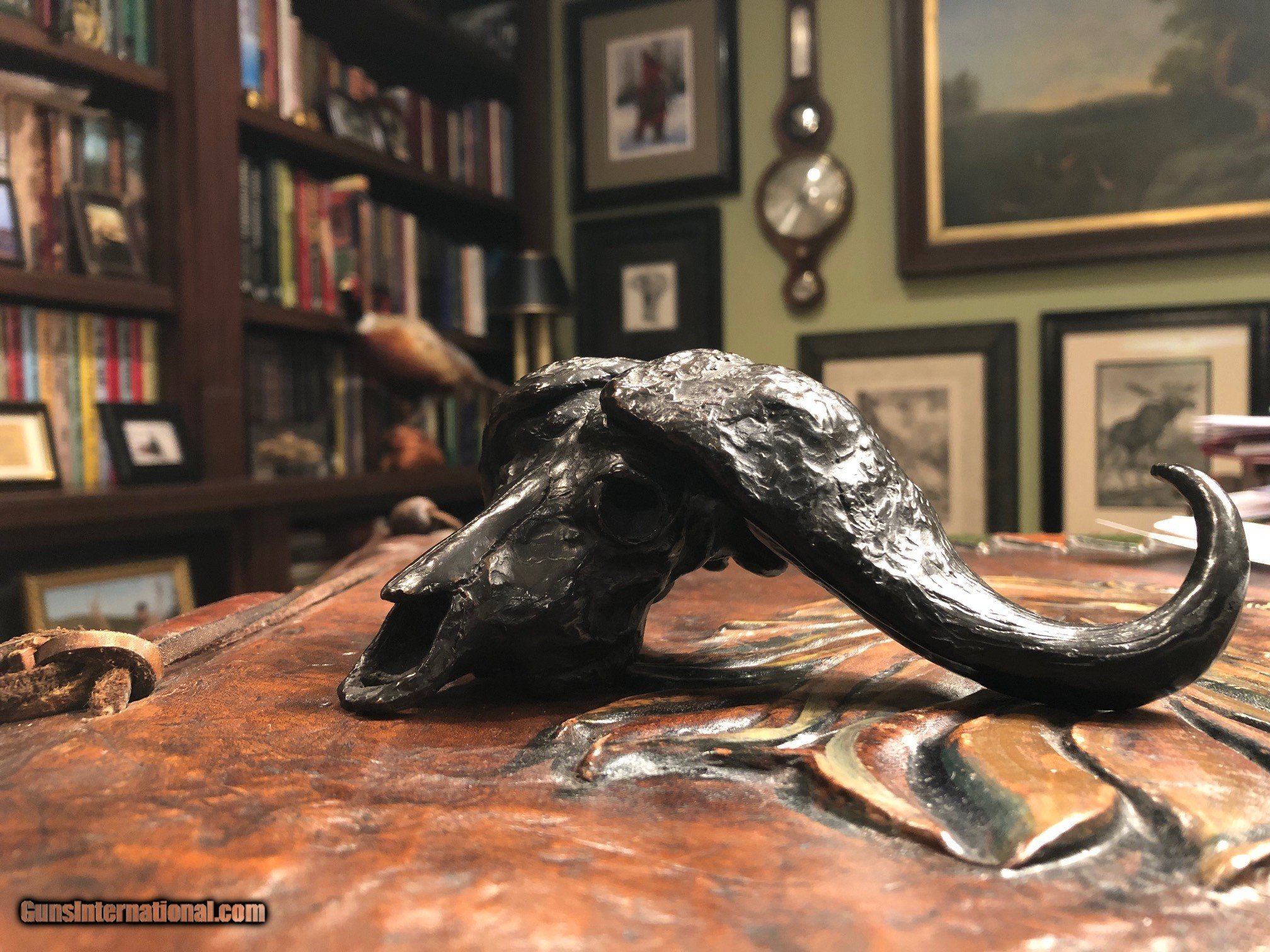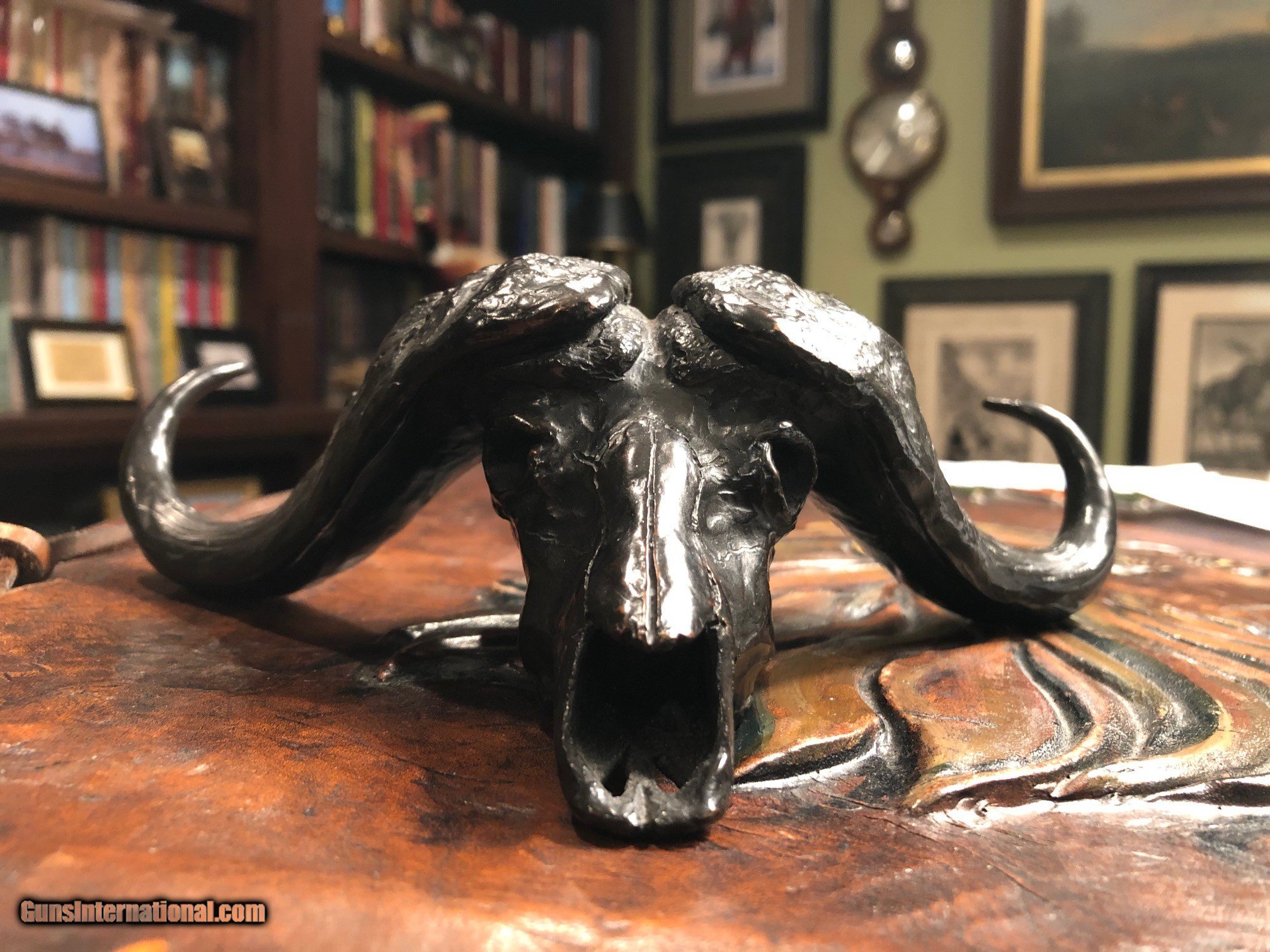 Description: Desk-sized bronze of a well depicted African Cape Buffalo skull. Limited edition. Signed and numbered 68 of 100. 7"H X 5"L X 4"W. EMAIL is the best method of contact. Thank you. SOLD |