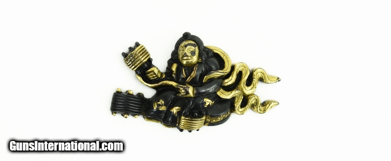 Description: "Kinko Menuki. Shakudo ground. Formed as star-crossed lovers. Orihime and Hikoboshi in shakudo and gold. Unsigned SOLD |