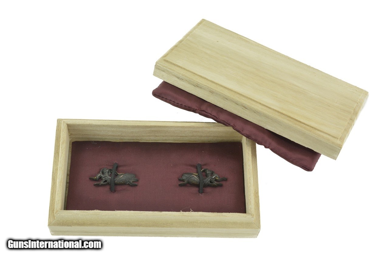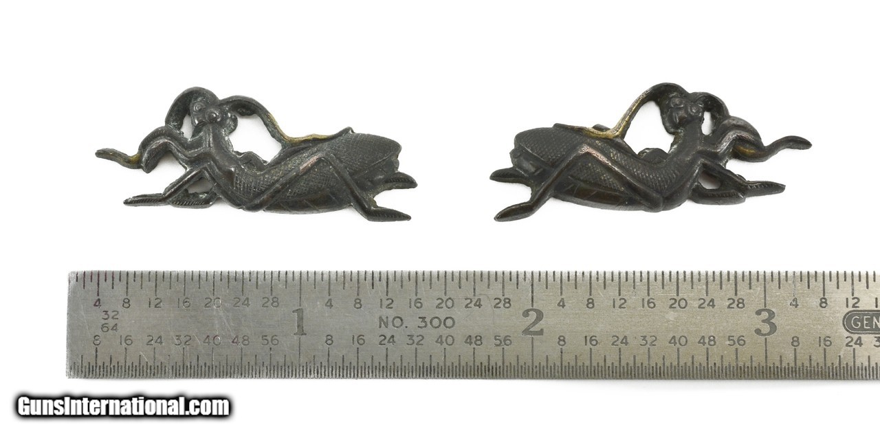 Description: "Kinko Menuki. Shakudo mantis with gold highlights. Unsigned. SOLD |