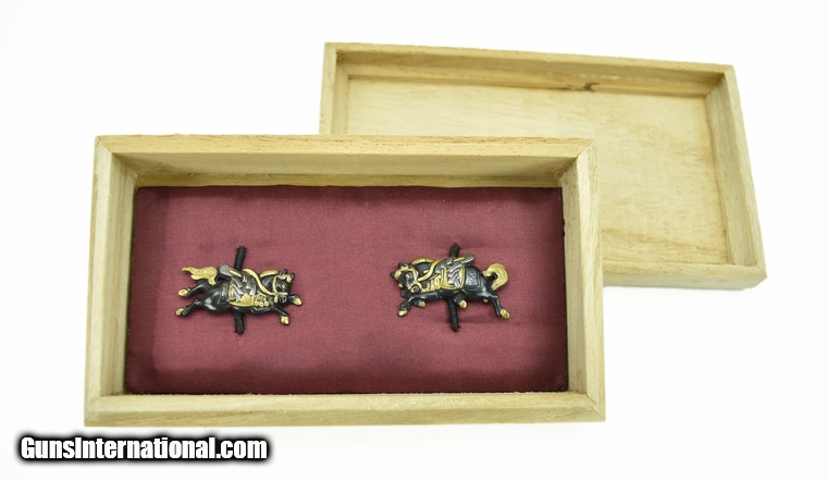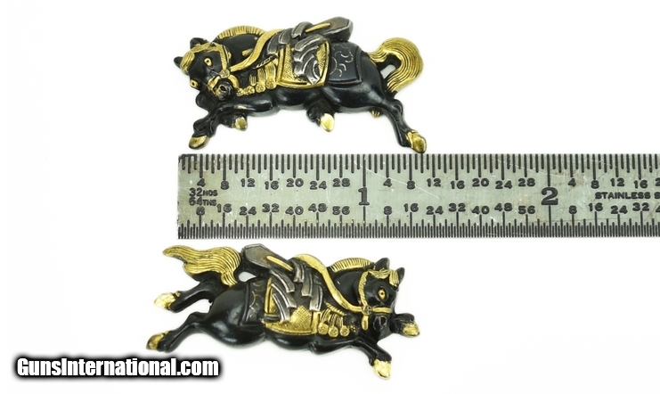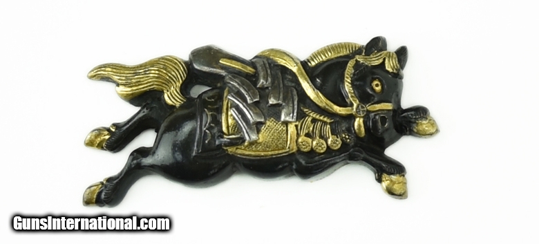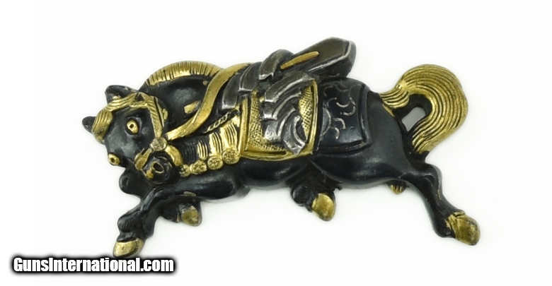 Description: " Kinko Menuki saddled horses with gold and silver highlights. Excellent detail and condition. 1 ½” or 3.6” long. SOLD |