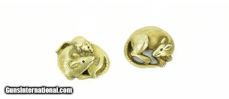 Kinko Menuki (button). Rats are gold plated. Tanto size. Signed.