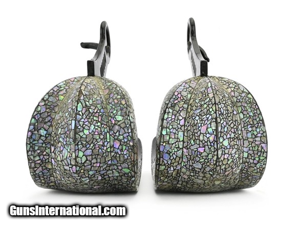 Description: "Antique Japanese Stirrups. Iron with abalone shell decorative. SOLD |