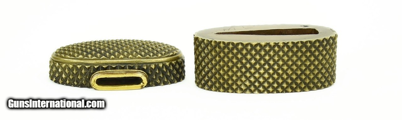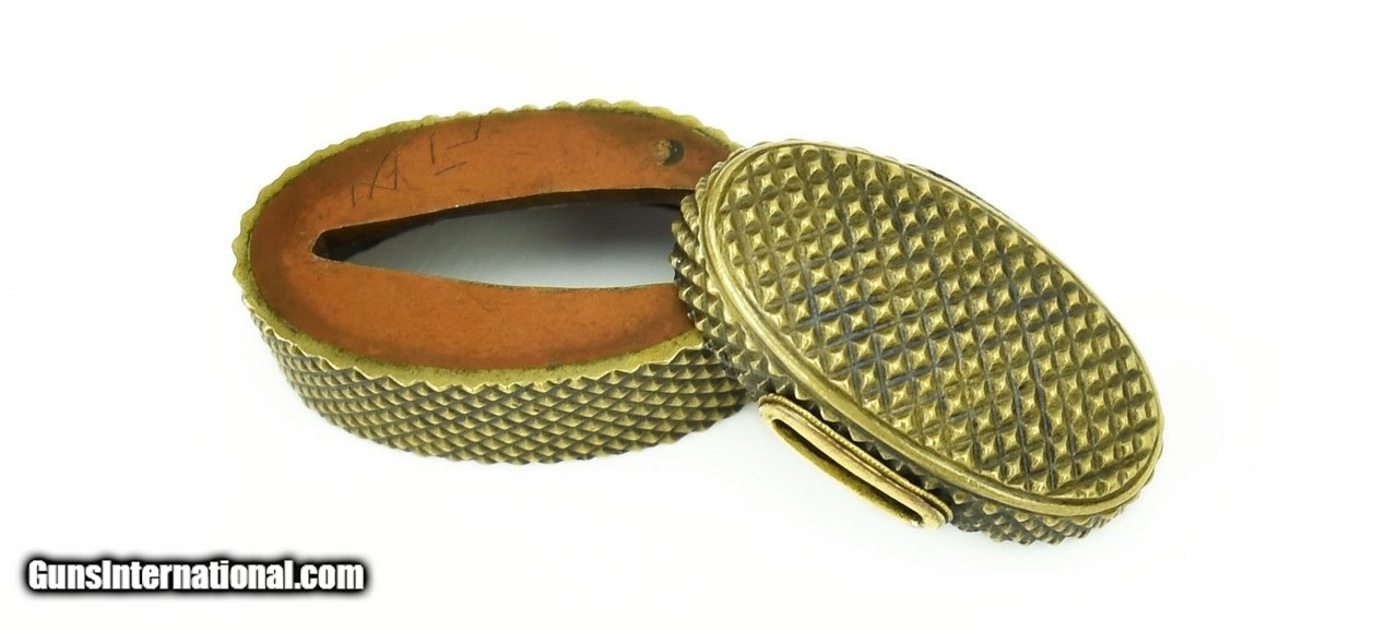 Description: "Fuchi Kashira Well Cut Large Nanako. Dark Gold Plate unsigned. Excellent condition. SOLD |