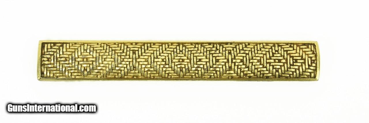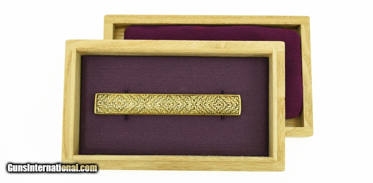 Description: "Geometric Weave Pattern Kodzuka with gilded finish. Reverse has 2 different types of cat-scratch. Note: Kodzuka has cat-scratch on side. SOLD |