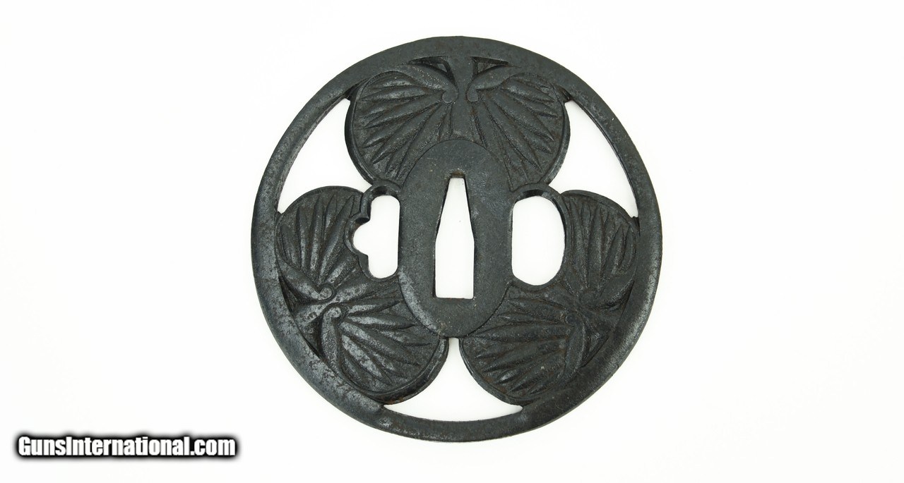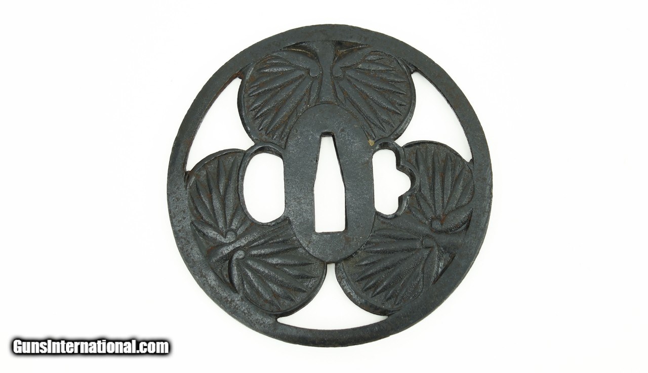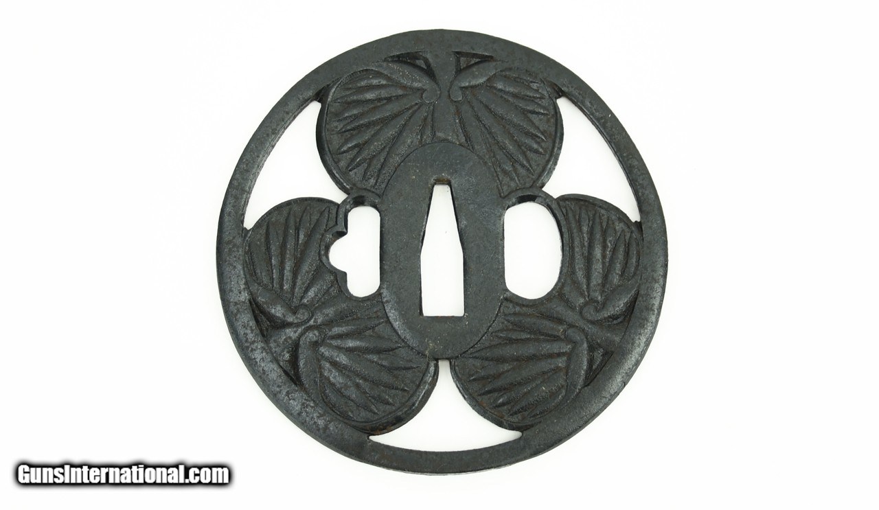 Description: "Iron Dai-Sho Tsuba. Sukashi with Blossoms. Comes with custom box. SOLD |