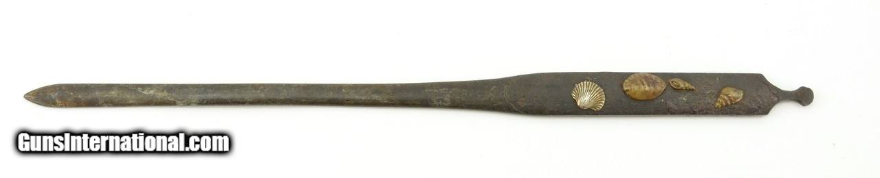 Description: "Iron Kogai. Theme of seashells in copper and silver on textured ground. Mumei (unsigned). SOLD |