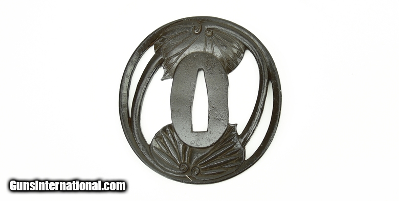 Description: "Iron Sukashi Tsuba. Diameter: 7.1cm, 2 ¾". Signed: Echizen Ju Kinai Saku. SOLD |