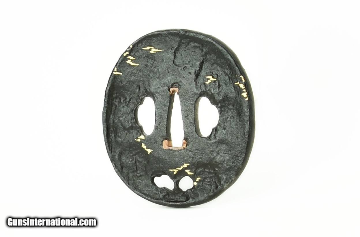 Description: "Iron Tsuba Country Scene with Mountain Fuji and Village signed. Diameter: 8.6 cm, 3 ¼". SOLD |