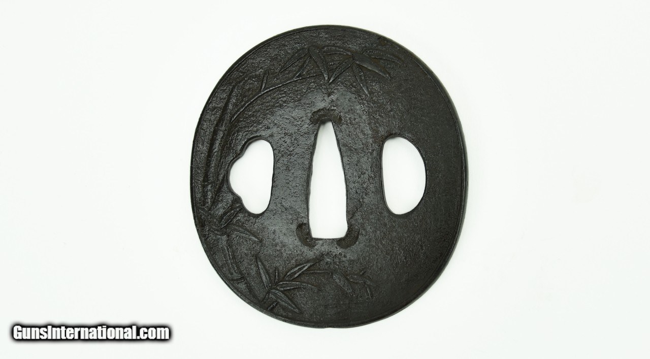 Description: "Iron Tsuba with tiger in tree. Diameter: 6.7cm, 2 ½". SOLD |