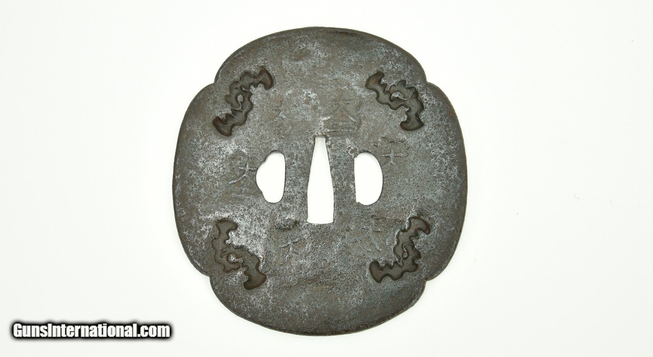 Description: "Iron Tsuba. Very large. Katana sized. Has Tenpo stamps. SOLD |