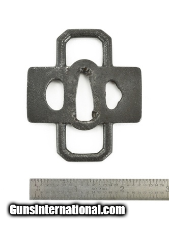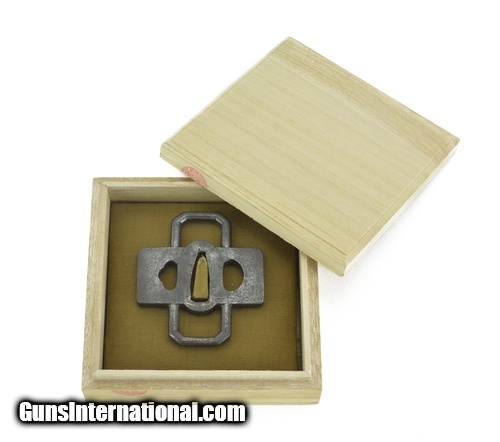 Description: "Iron Tsuba. Rare form. Rustic but unusually neat. Signed. Masa Toshi. Boxed. SOLD |
