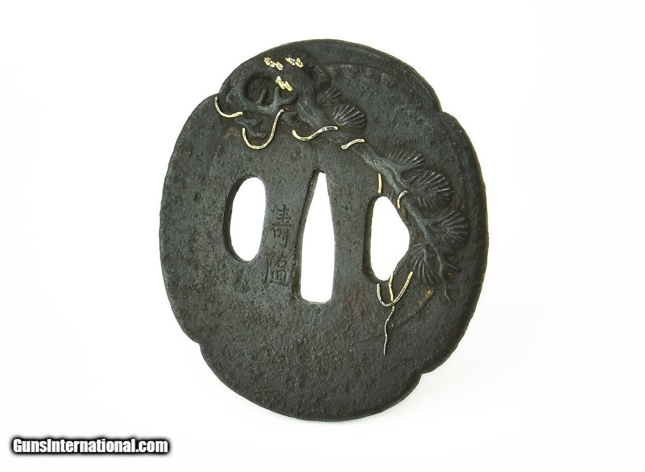 Description: "Iron Tsuba Tree Motif. Signed: Toshi Yuki. Diameter: 8.5 cm, 3 ¼". SOLD |