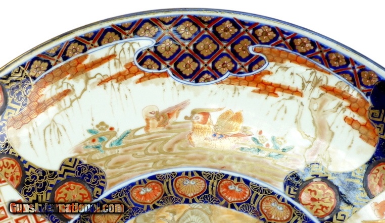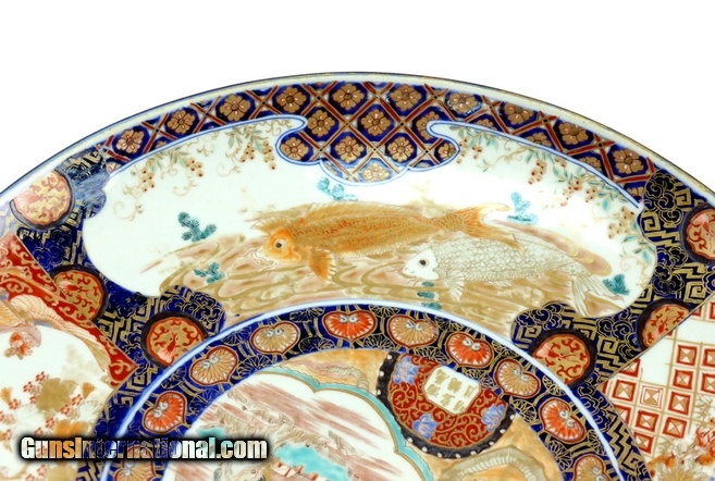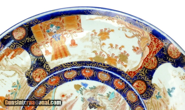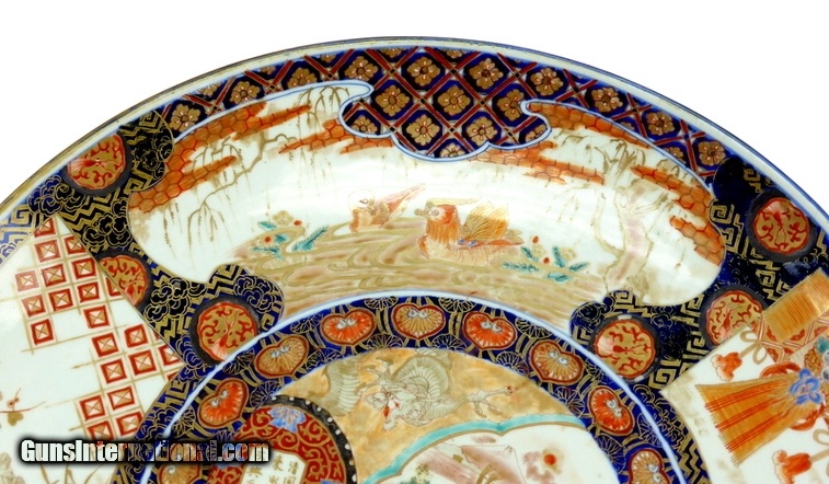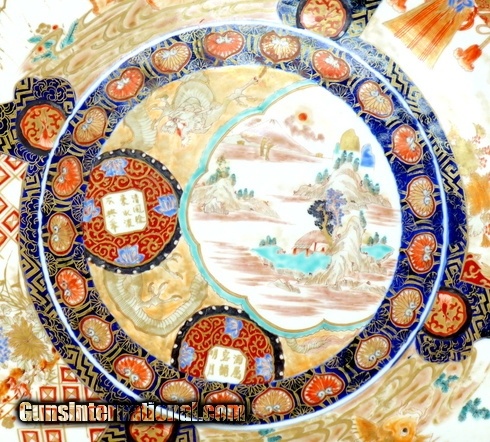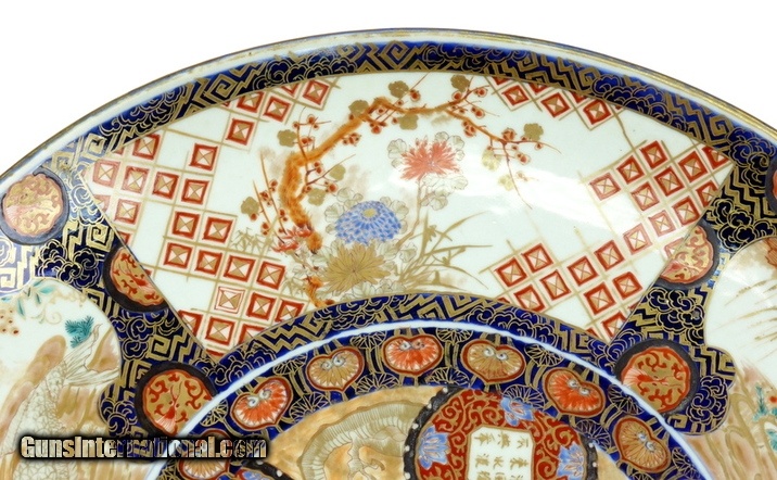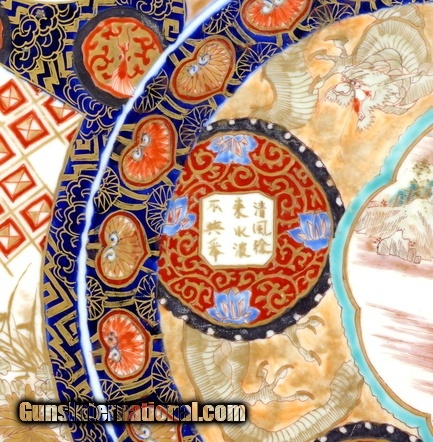 Description: "Japanese Imari Charger. 22" diameter. No chips, no cracks. Rim has gold wear, all other art work is fine. 22" chargers are hard to find as many were damaged or lost in the kiln firing process. This is a 19th Century Imari Charger. SOLD |