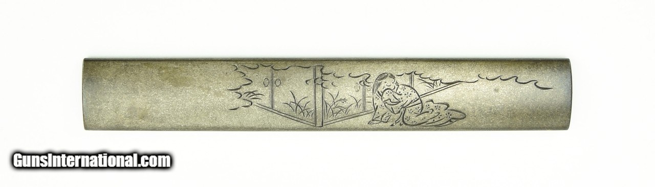 Description: "Kinko Kodzuka. Burnished silver Geisha in Kimono with portion of house in background. Signed: Goto Mitsu Yasu (1794-1851) Kinko Meikan Page 508a. SOLD |